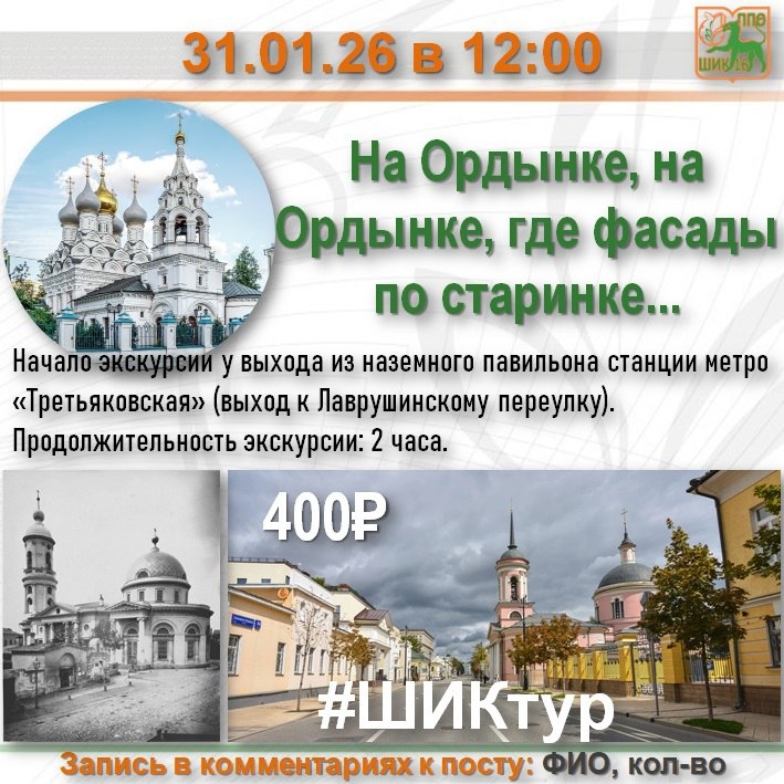 + Единственная улица Москвы, сохранившая все храмы от древних церквей до Марфо-Мариинской обители! Она до сих пор сохраняет дух старой купеческой Москвы, помнит дорогу в Золотую Орду и бывших жителей, от «ордынцев» до Анны Ахматовой. Приглашаем вас в увлекательное путешествие по одной из самых живописных и исторически насыщенных улиц Замоскворечья — Большой Ордынке! В ходе экскурсии: 🔔познакомимся с архитектурными шедеврами Замоскворечья; 🔔увидим памятник Елизавете Фёдоровне и Сергею Александровичу Романовым; храм Климента папы Римского; 🔔рассмотрим дом доктора Эберлина в Климентовском переулке; 🔔узнаем историю городской усадьбы Долговых; 🔔увидим церковь Святителя Николая в Пыжах; побываем в Марфо-Мариинской обители — духовном центре Москвы; 🔔совершим углублённую экскурсию (длительностью 1 час) в храме в честь иконы Божией Матери «Всех скорбящих Радость». Вы откроете для себя: читайте в комментарии к посту