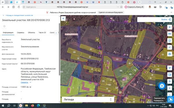Название: Земельный участок с кадастровым номером 68:20:0701006:213, площадью 1800 кв.м., расположенный: Российская Федерация, Тамбовская