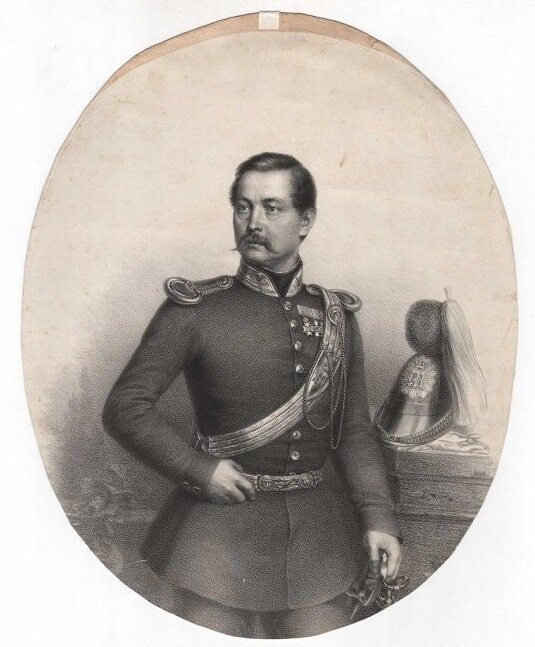 И вновь мы возвращаемся к когда-то уже затронутому сюжету. Почти два года назад мы здесь пытались атрибутировать «портрет неизвестного военного» середины XIX в., хранящийся в ГАУК МО «Объединенный мемориально-художественный музей-заповедник «Усадьба Мураново» имени Ф.И. Тютчева и народных художественных промыслов «Усадьба Лукутиных» Числился этот портрет в музее, как уже было отмечено, именно как портрет неизвестного. Нам в ходе проведенного два года назад «расследования» удалось установить государственную принадлежность персонажа (Бавария) и предположительный чин (подполковник). Относительно служебной принадлежности мундира, а, следственно, и его владельца, я высказал предположение, что служит наш подполковник в одном из шеволежерских (легкоконных) полков. Читатель канала Василий Рожков не согласился с такой версией и, резонно заметив, что баварские шеволежеры носили мундиры лацканного типа, предложил вариант с баварской конной артиллерией. Личность изображенного тогда установить так