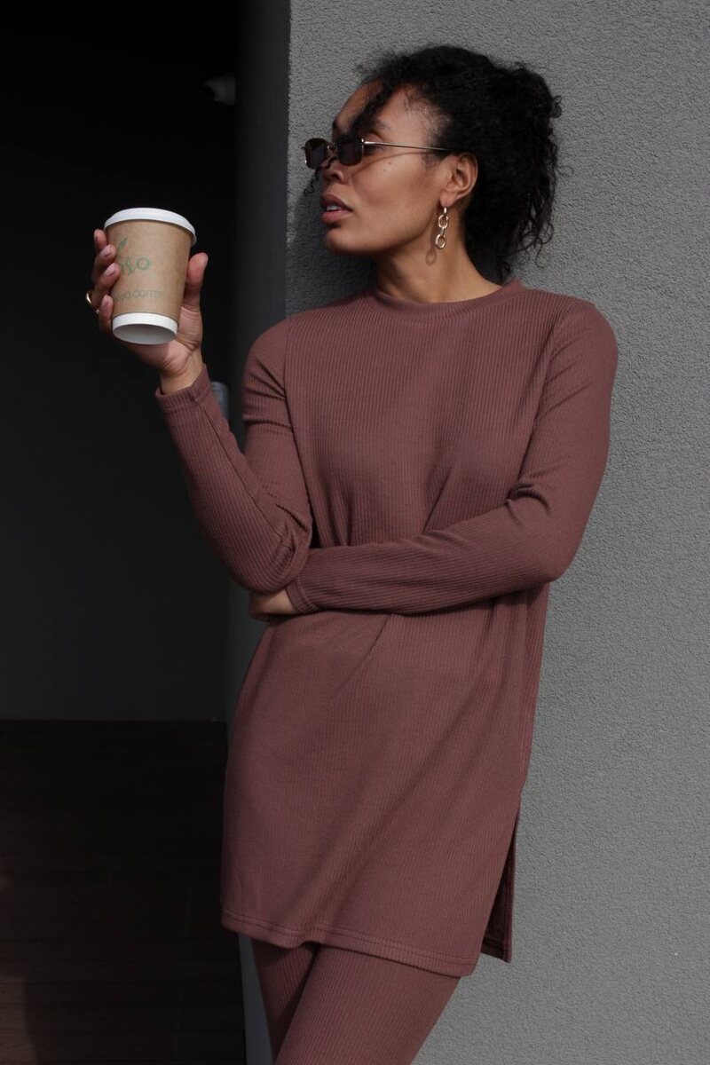 🤎 Глубокий оттенок мокко — благородный, тёплый, идеально вписывается в базовый гардероб и выглядит дорого в любой обстановке. Мягкая рибана красиво ложится по фигуре, подчёркивая силуэт и даря максимальный комфорт. Джемпер характеристика: — удлинённый крой — аккуратные разрезы по бокам для лёгкости и свободы движений — отлично сочетается как с брюками из комплекта, так и с джинсами или юбками Брюки характеристика: — высокая посадка — удобная резинка на талии без давления — лёгкий клёш внизу визуально вытягивает ноги Дуэт в идеальном балансе стиля и комфорта: для города, путешествий, встреч и уютных дней, когда хочется выглядеть безупречно без лишних усилий. Цвет: серый, мокко, экрю Цена 4950- Оформить заказ, помочь с размером - напишите нашим менеджерам