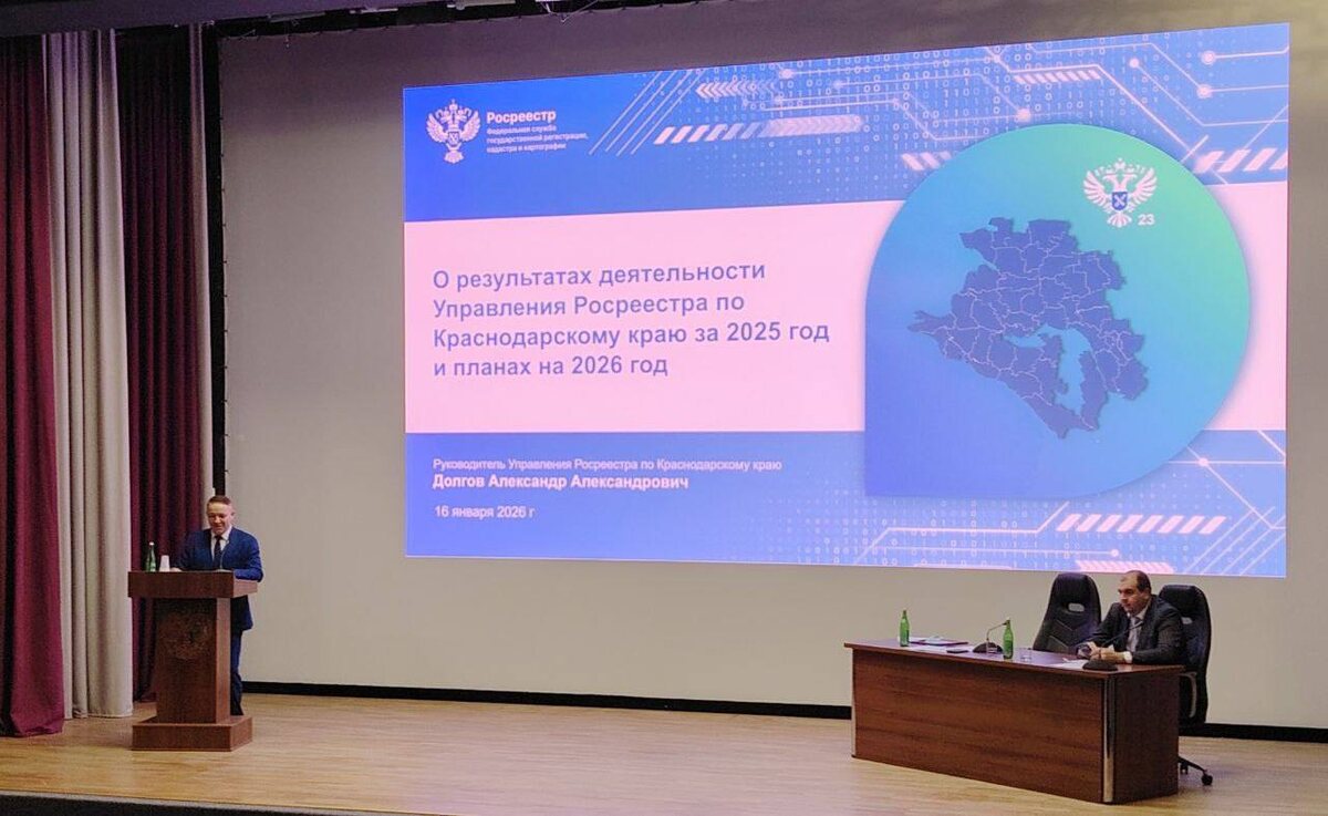 Совещание открывал руководитель Управления Росреестра по Краснодарскому краю Александр Долгов. Он отметил положительные результаты в сфере использования земли и вовлечения в экономический оборот объектов недвижимости. С докладами выступили заместители руководителя Управления Дмитрий Чернобровенко и Сергей Осипов. Они затронули вопросы о реестровых ошибках и совместной деятельности с филиалом ППК «Роскадастр». Директор филиала ППК «Роскадастр» по Краснодарскому краю Иван Сулим подвел итоги работы организации за 2025. Он рассказал о результатах ведения реестра границ ЕГРН, предоставлении сведений из ЕГРН, приносящей доход деятельности. Директор Филиала обратил внимание на показатели по оцифровке реестровых дел. Были определены ключевые направления деятельности Филиала на 2026 год: повышение точности и достоверности сведений ЕГРН, проведение комплексных кадастровых работ на территории региона.