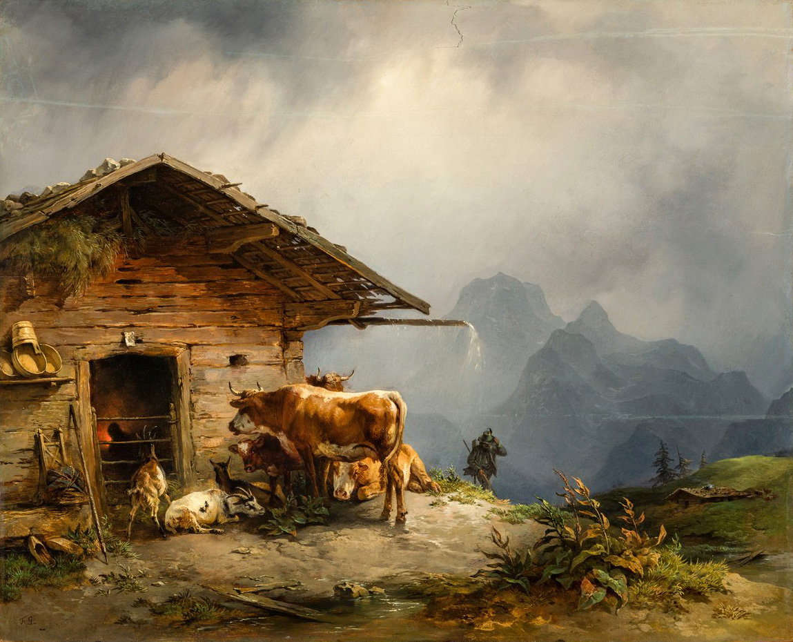 Фридрих Гауэрманн (1807-1862) получил свои первые уроки живописи от отца, пейзажиста, а затем учился в Венской академии искусств с 1824 по 1827 год. Основным источником его художественного развития стали голландские пейзажи XVII века и картины с изображением сражающихся животных. Его родители проводили каждое лето на своей ферме в Мизенбахе, и именно во время этих поездок и путешествий художник открыл для себя величие альпийских гор и пастбищ. Вернувшись в свою мастерскую, он создавал законченные композиции на основе этюдов и эскизов, сделанных в этих впечатляющих местах. Несмотря на сходство картин, на которых изображены его почти фирменные коровы, сельскохозяйственные животные, трудолюбивые крестьяне и альпийские хижины, они не монотонны, а всегда сохраняют свежесть первоначального впечатления. Гауэрманн с удивительной чуткостью интегрировал животных и человеческие фигуры в свои пейзажи, создавая своего рода переход между жанровой живописью и пейзажами. Подобно своим предшестве