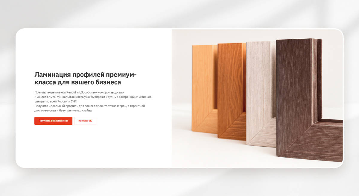 Компания «Антарес» - один из лидеров рынка ламинации ПВХ-профиля. Производство работает с 1990 года, мощности - до 2 000 000 погонных метров в год. Клиент пришёл к нам за лендингом под контекстную рекламу: нужен был сайт, который выглядит дорого, внушает доверие и приводит новых B2B-лидов.🔝 «Антарес» - это собственное производство, премиальные плёнки, современное оборудование и строгий контроль качества. Компания работает только в B2B и только с крупными объёмами, поэтому лендинг должен был сразу отсеивать неподходящую аудиторию и одновременно усиливать имидж. Перед нами встала задача создать лендинг на RANX, который: 🔺 генерирует лиды из контекста; 🔺 подчёркивает технологичность и статус компании; 🔺вызывает ощущение надёжности и премиальности; 🔺помогает сравнивающей и «долго выбирающей» аудитории принять решение. Мы выбрали стиль «премиальный минимализм»: чистая структура, крупные изображения в каталоге пленки. Лендинг выстроен так, чтобы быстро показать ценность, доказательства