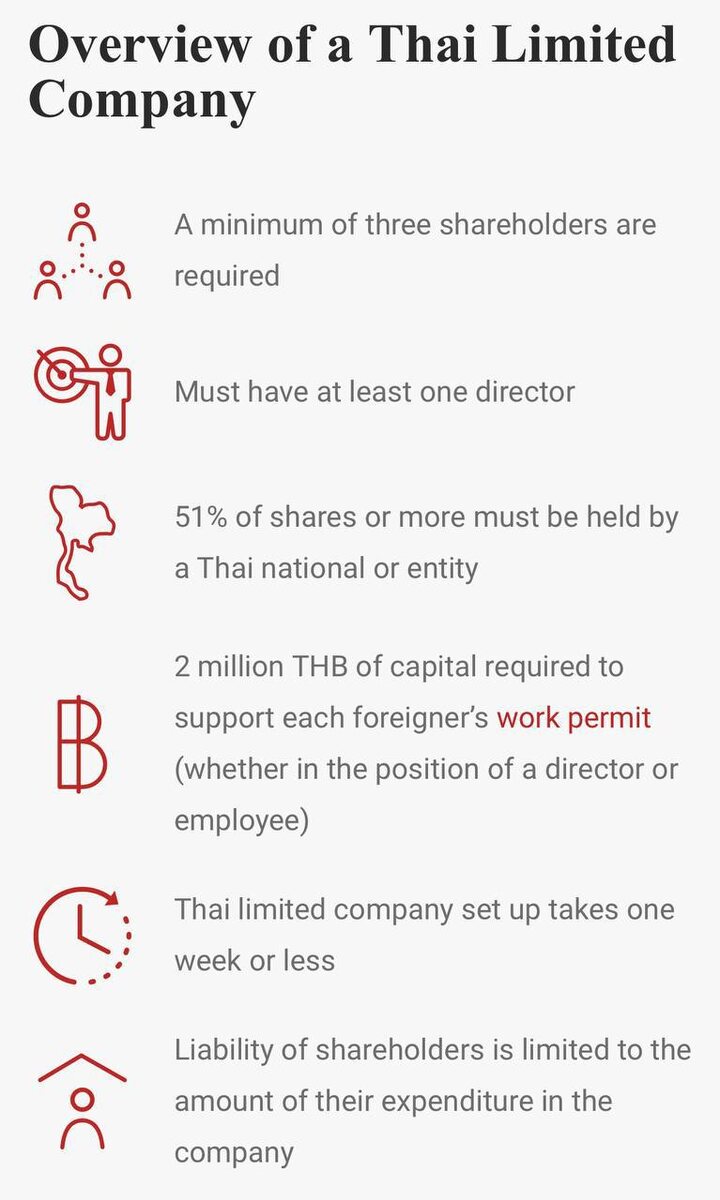 »? Thai Limited Company является наиболее популярной организационно-правовой формой для создания бизнеса. ✅Регистрация такой компании происходит в Департаменте развития бизнеса Министерства коммерции и занимает не более одной недели. ⚡️⚡️⚡️⚡️Не менее 51 % акций должны принадлежать гражданам Таиланда или тайским юридическим лицам. За последние годы DBD и Налоговая служба Таиланда серьёзно ужесточили проверки ⤵️ Если структура выглядит как «тайцы на бумаге, а реальный контроль и деньги — у иностранца», компанию признают номинальной: отзовут визы, разрешения на работу, аннулируют регистрацию и заберут активы. Директор — это законный представитель компании, уполномоченный подписывать документы и действовать от её имени. Акционеры назначают одного или нескольких директоров. ✅ Директор может одновременно являться одним из учредителей при регистрации. Если директор — иностранный гражданин, он обязан получить действующее разрешение на работу и соответствующую визу, дающие право законн