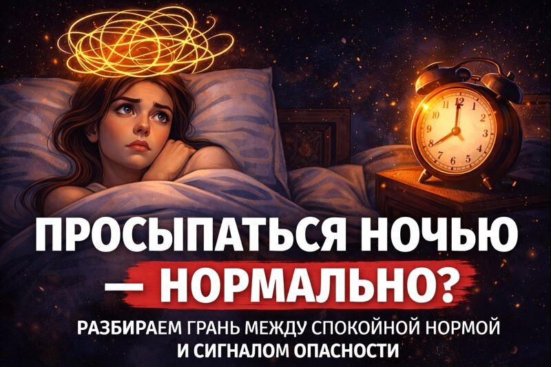 30% людей задаются вопросом, нормально ли просыпаться ночью и где проходит граница между нормой и действительными проблемами со сном. Просыпаюсь в три часа, смотрю на часы и уже боюсь завтрашнего дня, знакомо? Само по себе ночное пробуждение еще не диагноз. С точки зрения эволюции человек редко спал «одним куском». Изначально люди спали в два захода: первая часть сна, короткий период бодрствования, затем второй сон. Такой сегментированный сон для мозга естественен. Важно не само пробуждение, а частота, сколько длится и твой уровень тревоги вокруг этого. Да, один или пара подъемов ночью в туалет будут нормой. Особенно если вы пьете много жидкости вечером, любите чай или кофе во второй половине дня или уже не так юны. Наши предки тоже спали с пробуждениями: одни подбрасывали дрова, другие выходили по нуждам, кто-то вставал и проверял, все ли в порядке. Для мозга это естественная «проверка обстановки». Повод насторожиться появляется, если вы: В таком случае стоит обсудить ситуацию с вра