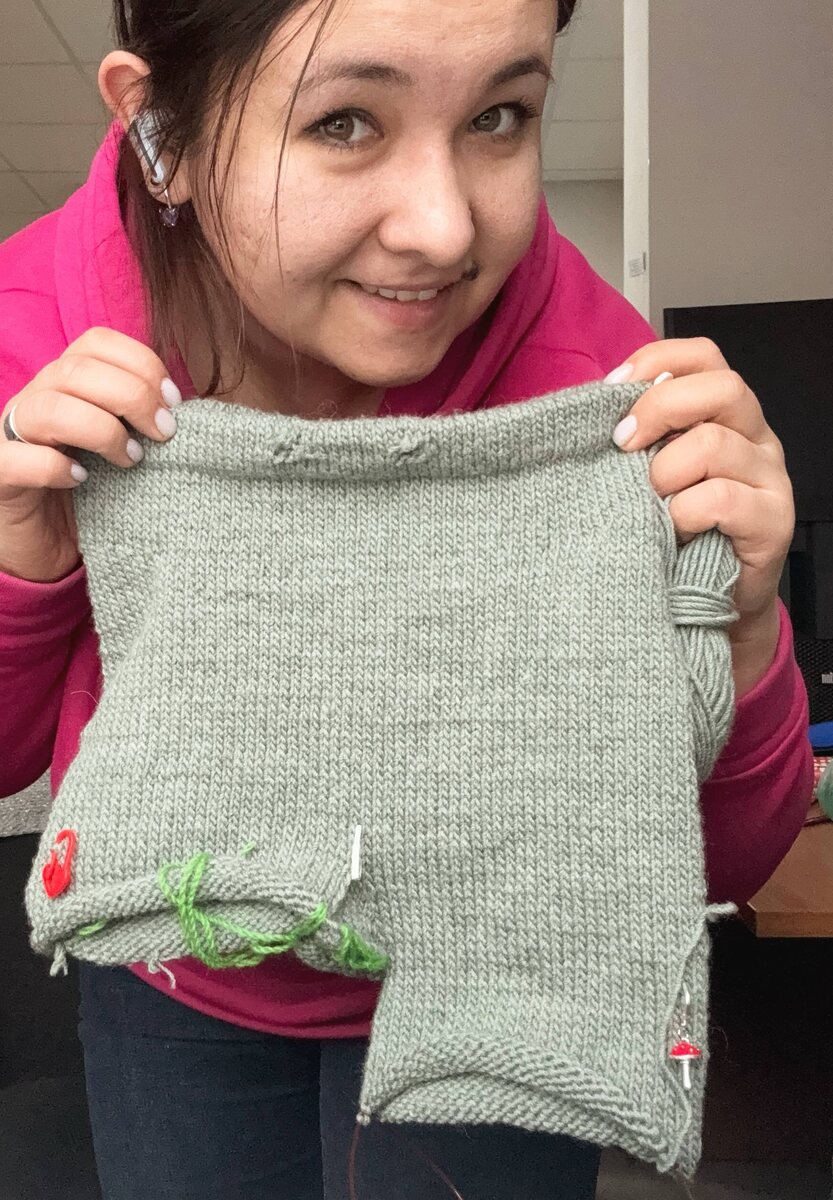 Недавно начала третий моток. Ластовицу и вторую штанину сняла на вспомогательные нити. 18 рядов — полет нормальный. К морозам не успею, но ничего страшного. Зима ещё не закончилась, а штанцы на вырост ☺️ Заказчик мерил. Был доволен. Пряжа Drops Merino extra fine, спицы 3 мм
