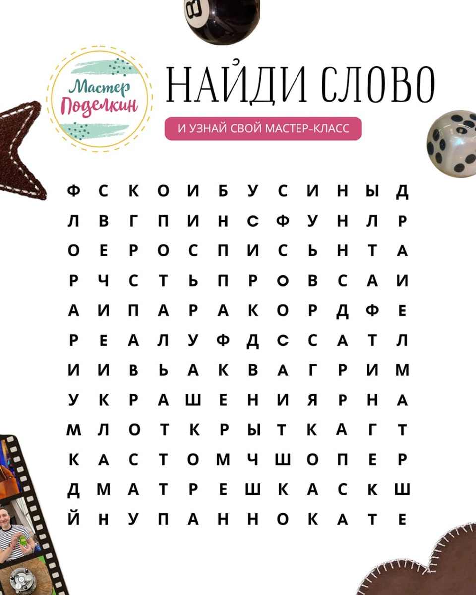 Иногда, чтобы понять, чего хочется, достаточно просто посмотреть 👀 На картинке — мастер-классы «Мастер Поделкин». Какое слово поймал взглядом первым — такой формат тебе сейчас ближе! Поделись в комментариях, а мы расскажем подробнее про каждый вариант!