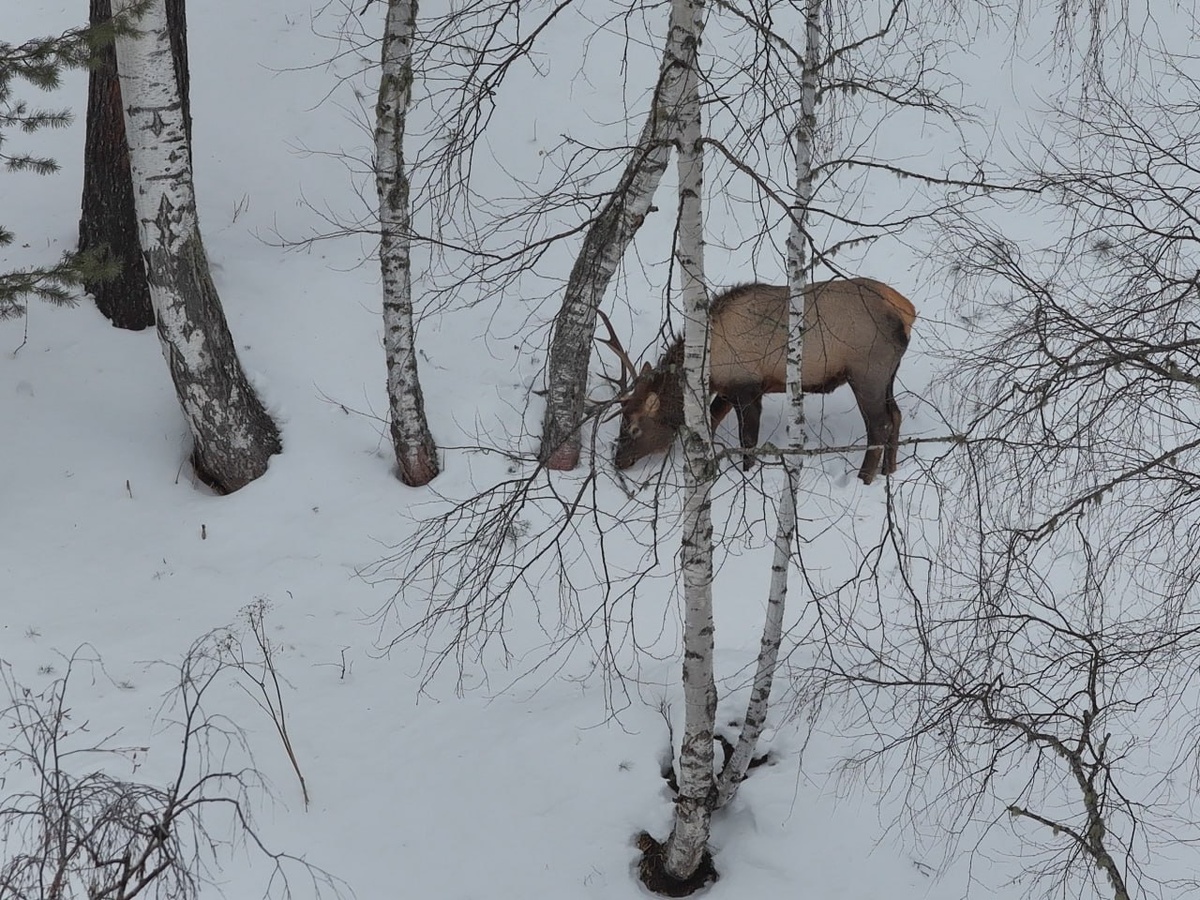 Морозы, ветра и глубокий снег осложняют жизнь этих крупных оленей. Передвижение затруднено, а доступ к зимнему корму – побегам, мхам и лишайникам – закрыт снежным покровом. В поисках мест с меньшим снегом животные спускаются с вершин туда, где толщина снежного покрова меньше и передвигаться, добыть корм легче. Фото: Роман и Татьяна Воробьёвы.