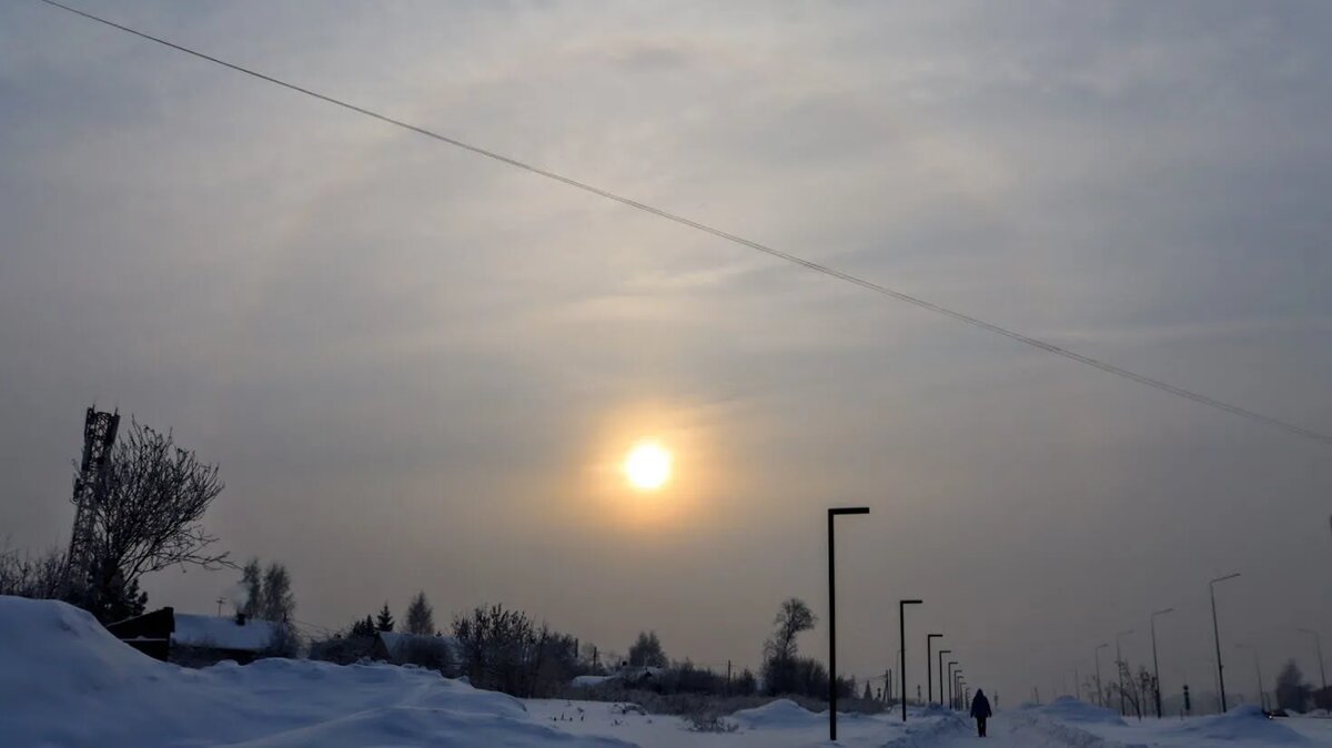 Во всё небо. Небо синее, видно даже, но смог. Жк Наследие видно со всех точек города, как трубы Грэс)