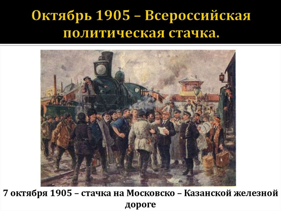 Проходил 19 сентября–7 октября 1905 г. (по новому стилю – 2-20 октября 1905 г.). Еще в августе 1905 года работники московской типографии Сытина потребовали уменьшить рабочий день до 9 часов и увеличить зарплату за счет оплаты не только букв, но и запятых (они составляли 12 % от набранного текста). Предприниматель согласился на сокращение продолжительности рабочего дня, но зарплату не повысил. В ответ 19 сентября 1905 г. работники типографии начали забастовку. К ней присоединились служащие 50 московских типографий. Отсюда пошло известное выражение, что Всероссийская октябрьская политическая стачка началась из-за «сытинской запятой» Историческая справка В течение следующих нескольких дней к печатникам присоединились работники московских: · булочных; · табачных фабрик; · мебельных предприятий; · трамвайного депо; · металлургических фабрик. 7 (20) октября ВЖС обратился с призывом ко всем сотрудникам железных дорог присоединиться к стачке. С этого момента забастовка приняла всероссийский ха