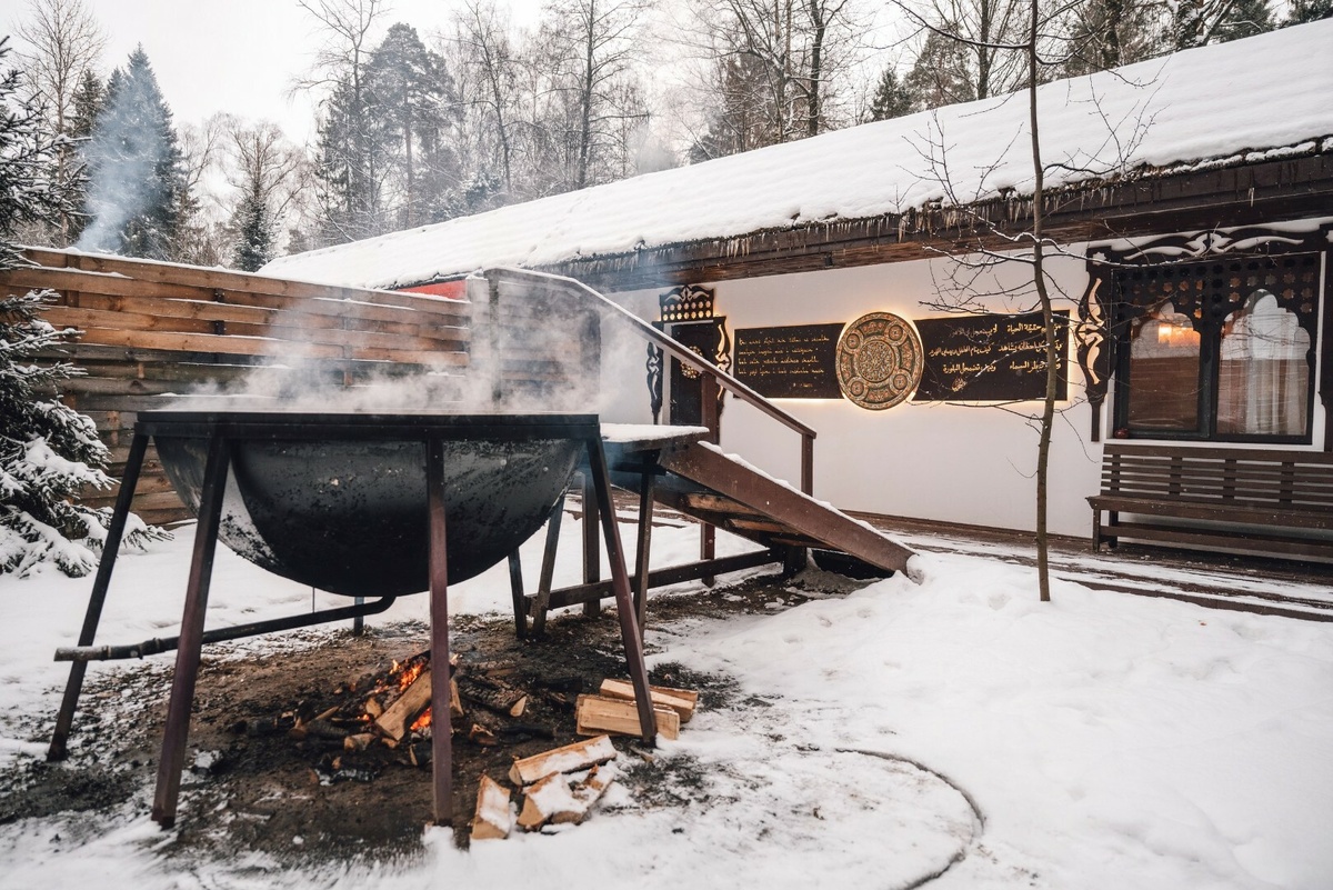 Сердцем и гордостью «Голицынских бань» является «Банный хутор» – комплекс элитного уровня с отдельной закрытой территорией площадью 600 квадратных метров. Здесь есть несколько видов парных: аутентичная русская баня по-черному, более привычная современному человеку баня по-белому или уникальная скифская баня. После парения будет приятно окунуться в купель с ледяной водой под открытым небом или в огромный чан на костре.