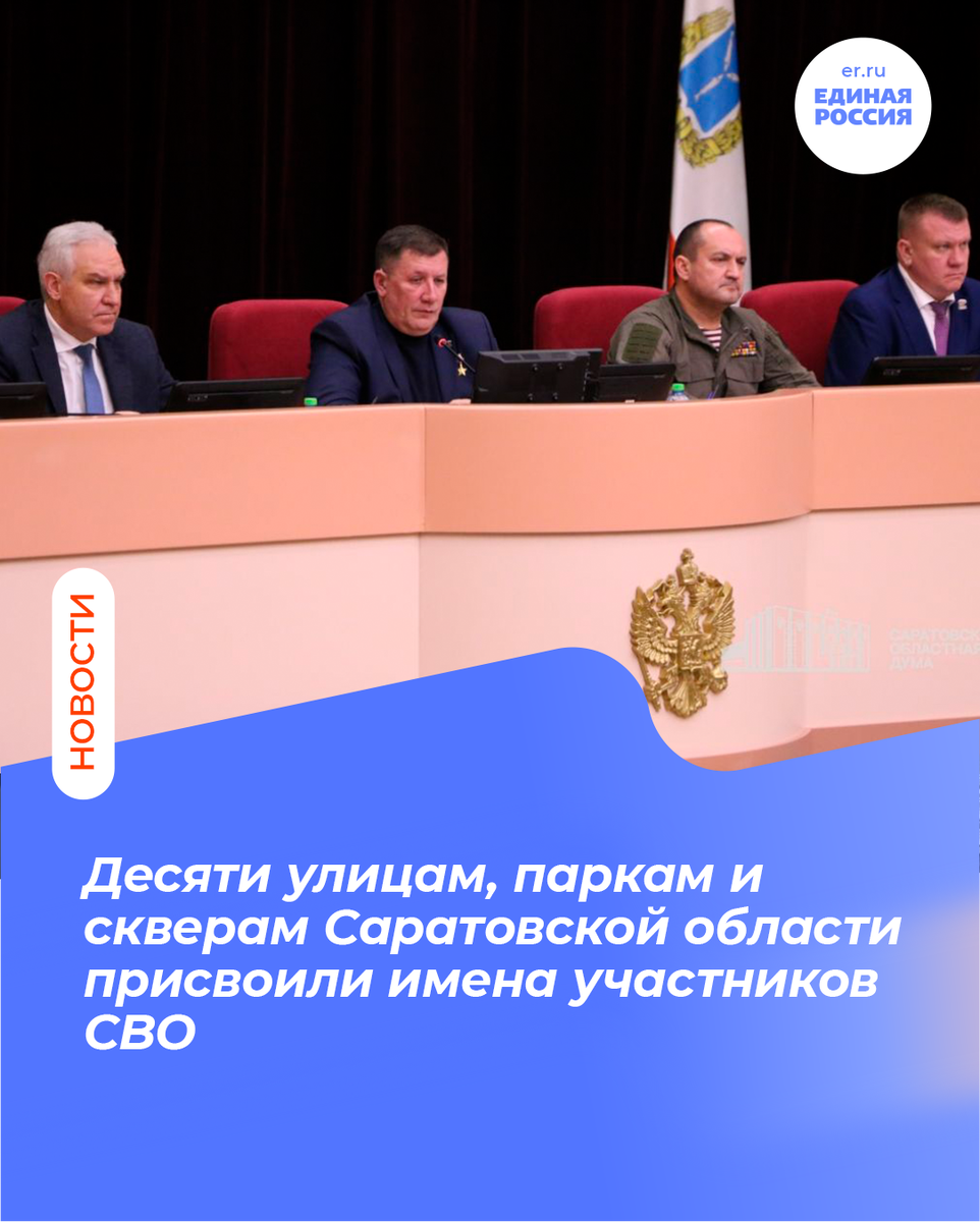 Исполняющий обязанности министра по делам территориальных образований Александр Милованов сообщил, что именами участников специальной военной операции в Саратовской области назвали 10 улиц, скверов, площадей и парков.
