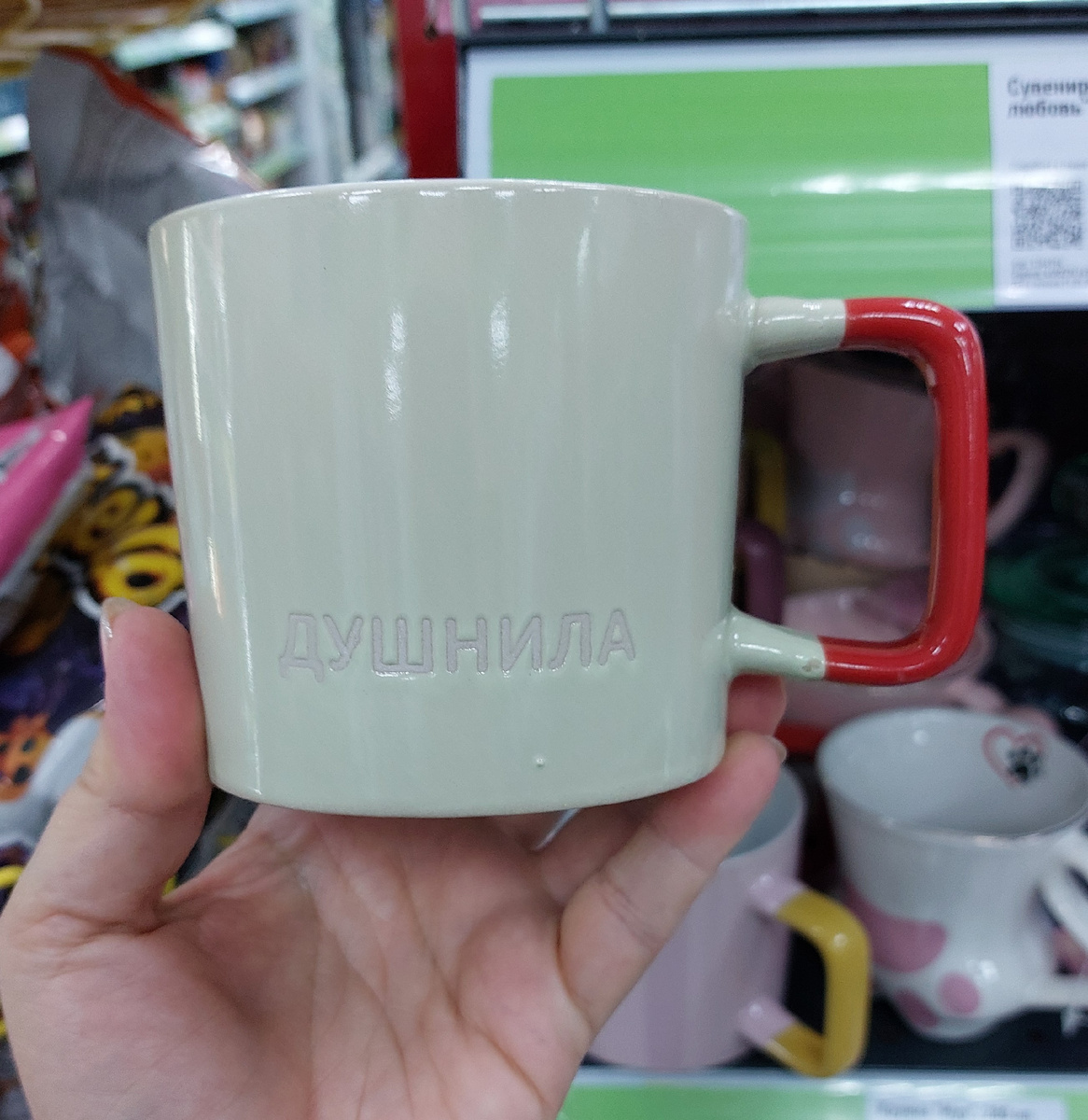 Новые кружки, объем 400 мл, керамика, надписи на русском и на одной на английском. Цена 260 рублей. Три цвета.