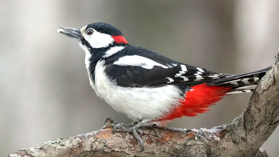 Малый пестрый дятел (Dryobates minor): Самый маленький дятел в Европе, размером с воробья. Окраска похожа на большого пестрого дятла, но без красного подхвостья.