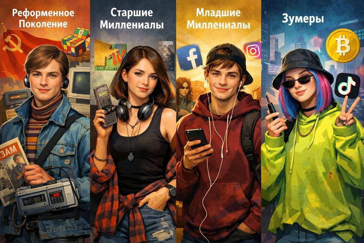 ❗️НИУ ВШЭ проанализировал данные опросов молодежи 20 лет из разных поколений: реформенное поколение, старшие миллениалы, младшие миллениалы, зумеры. Исследование показало, как менялись жизненные ценности и ориентации. 🔸Маркеры взрослости: ➡️Представители молодых поколений позднее выходят на рынок труда. ✅В 20 лет оплачиваемую работу имели: 🔸48% мужчин реформенного поколения, 🔸27% - среди мужчин-зумеров; 🔸36% женщин реформенного поколения, 🔸29% - женщин-зумеров. ➡️Стираются тендерные различия в доле занятых. ➡️Кризис самоопределения - растет доля 20-летних, которые не учатся и не работают. ✅Среди мужчин: 🔸20% - реформенное поколение; 🔸22% - старшие миллениалы; 🔸29% - младшие миллениалы; 🔸35% - зумеры. ✅Среди женщин: 🔹30% - реформенное поколение; 🔹25% - миллениалы; 🔹28% - зумеры. 🔸При этом 20-летние зумеры дольше остаются в системе образования для получения более высокой квалификации и не торопятся выходить на работу. 🔹Возраст вступления в брак и деторождения тоже сдвиг