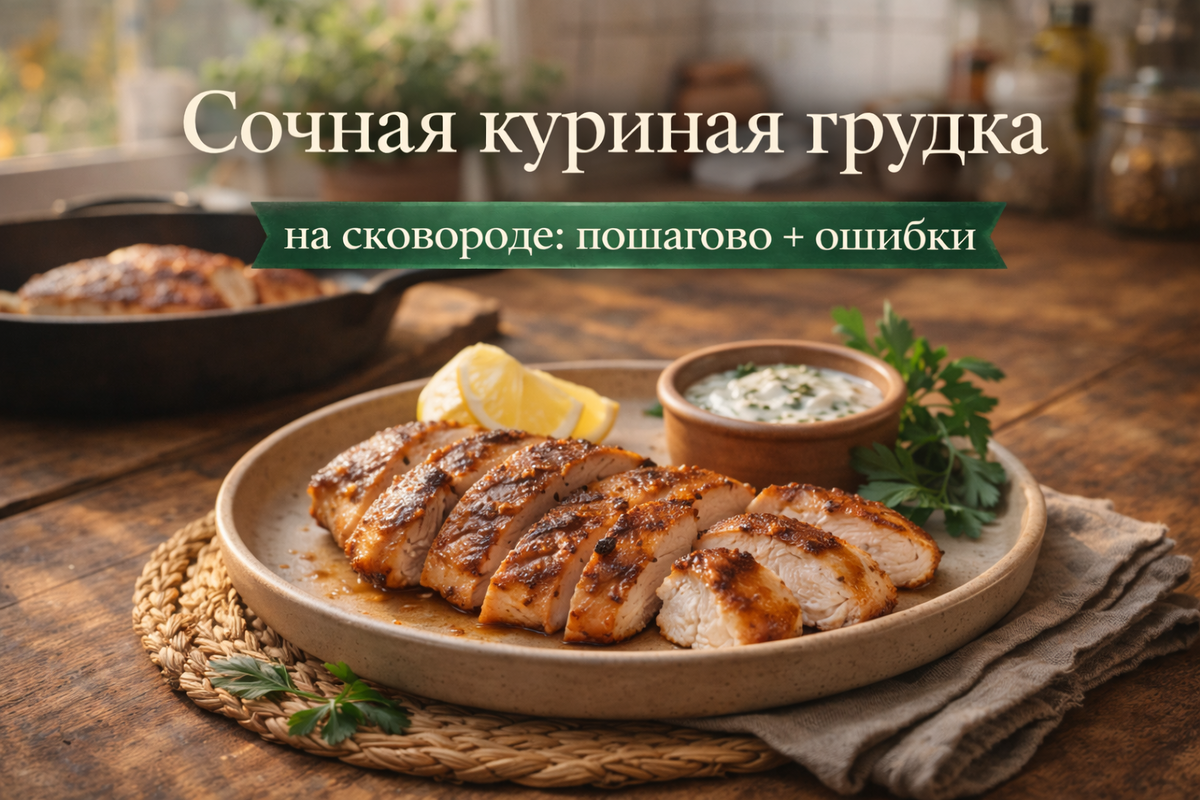 Сочная куриная грудка на сковороде: пошагово + 7 ошибок (и как их не допустить)