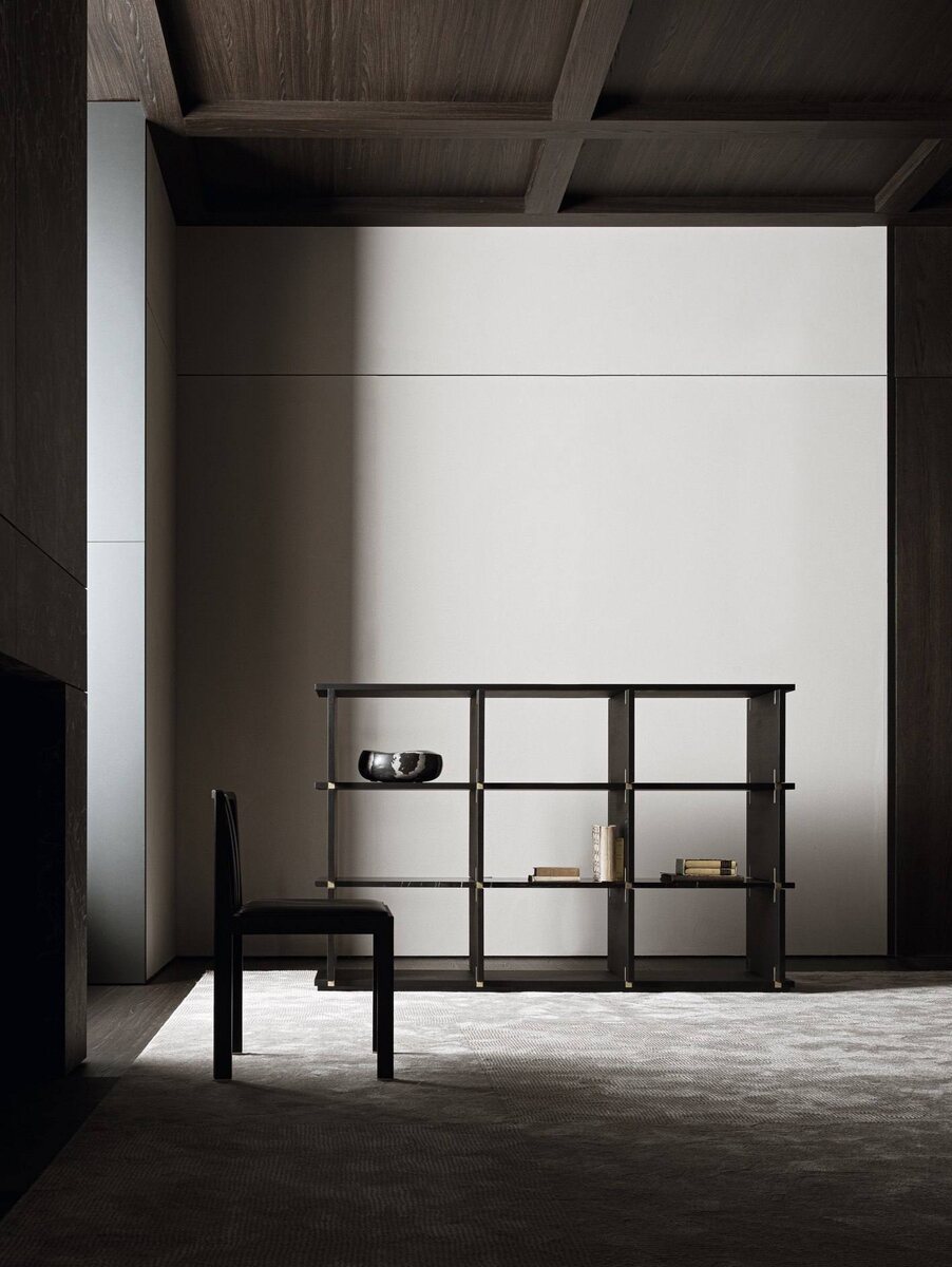 , отражая узнаваемую философию всемирно известного дизайнера. Отличающийся четким графическим стилем, книжный шкаф Card органично интегрирует характерный стилистический подход Анастасиадеса, где он фокусируется на чистых графических линиях и замысловатых деталях, каждая из которых тщательно проработана и выбрана. Черный дуб, соединения из сатинированной латуни и полки из мрамора Sahara Noir делают этот предмет элегантным дополнением к любому пространству. Для связи: @triointeriorbot