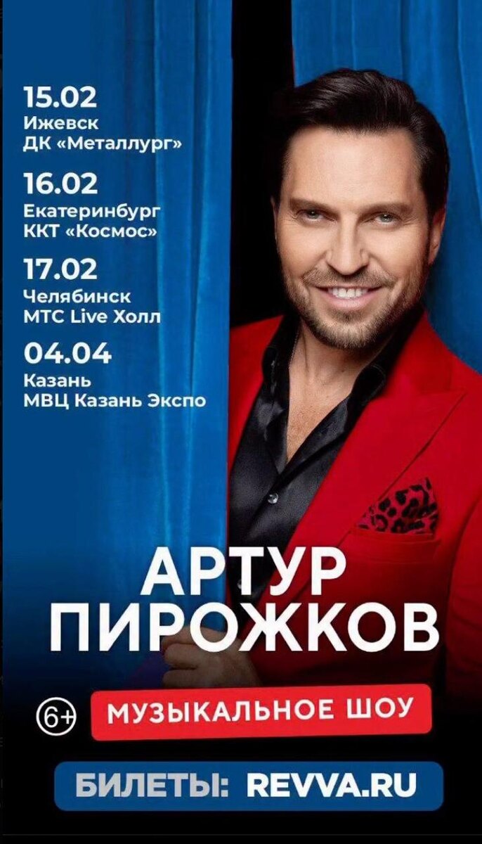 🎫 – Артур Пирожков: большие музыкальные шоу в Ижевске, Екатеринбурге, Челябинске и Казани