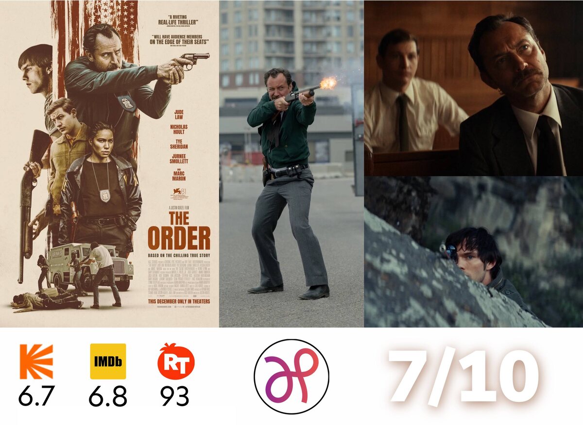 Безмолвное братство (2024) Холодная криминальная метафора на свободу слова в США. Собран фильм руками — Джастина Крузеля, а значит про динамику можно забыть. Во главе угла тихое и методичное зло с безобидным лицом Николаса Холта. В противоположном углу – усатый коп с лицом Джуда Лоу. Шедевра не вышло, но получилась крепкая, злая история, которая оставляет неприятный осадок. ▶️ Трейлер