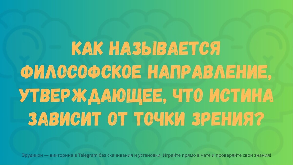 Викторина «Эрудикон» — вопрос №1462: Как называется философское направление, утверждающее, что истина зависит от точки зрения?