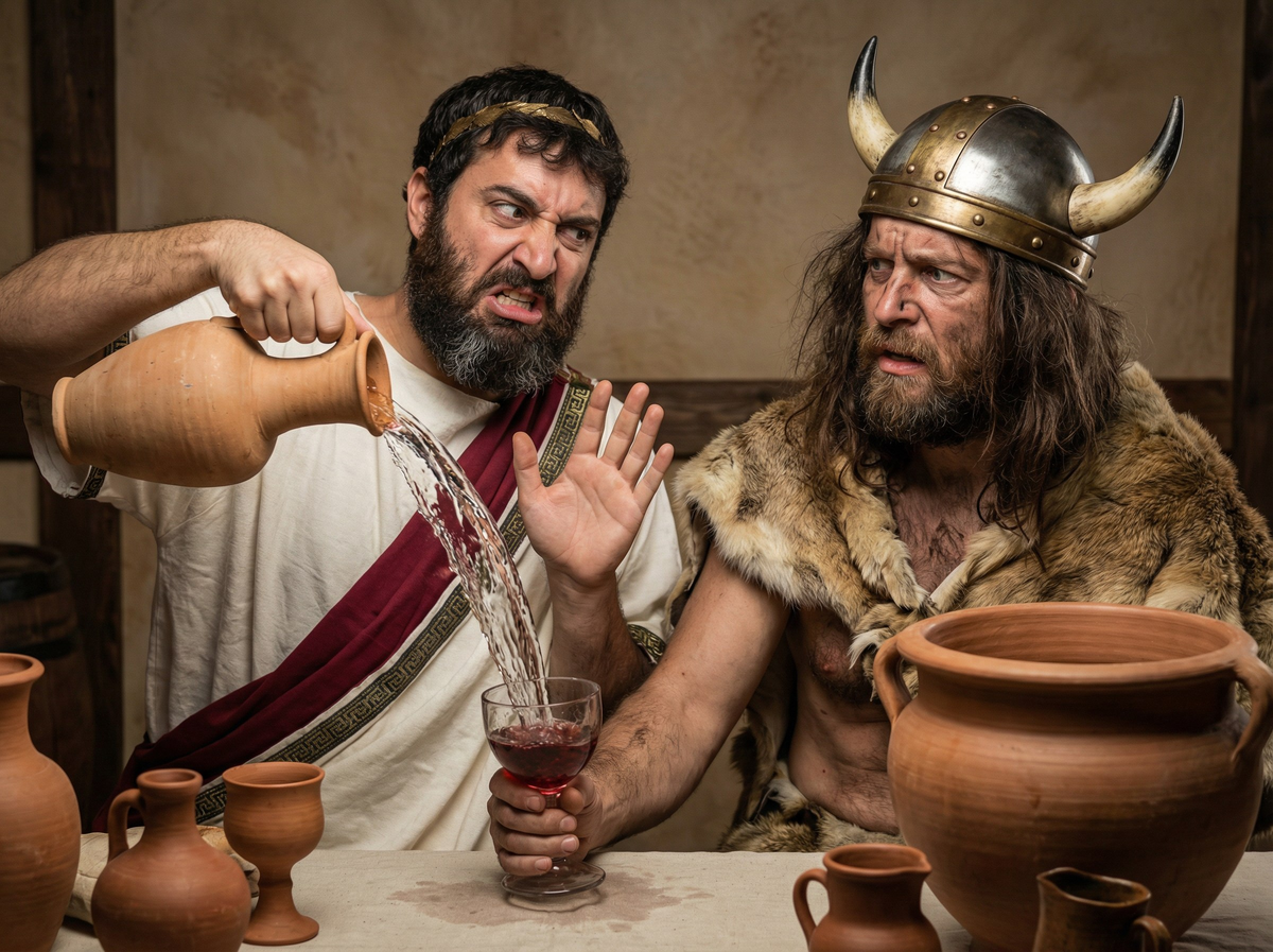 Эта сцена могла произойти в любом состоятельном доме древних Афин или Коринфа две с половиной тысячи лет назад. Древние греки — народ, подаривший человечеству демократию, олимпийские игры, театр и философию — намеренно разбавляли вино водой. И делали это не от нищеты или невежества, а следуя глубоко продуманной системе ценностей, где умеренность считалась высшей добродетелью.