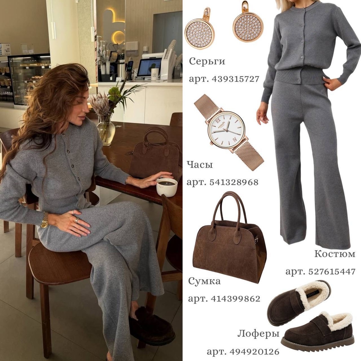 1. Серый трикотажный костюм: уют с характером
