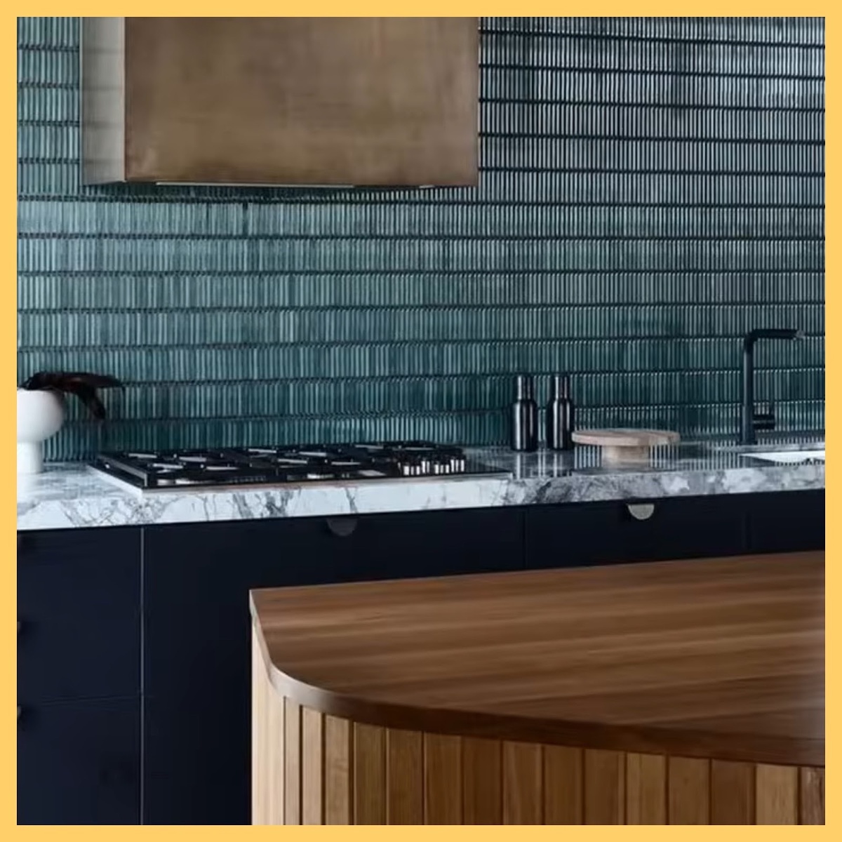 Хотите плитку «кабанчик» или мозаику (она сама даёт ритм за счёт швов и теней)? Тогда столешница и фасады пусть будут тише.