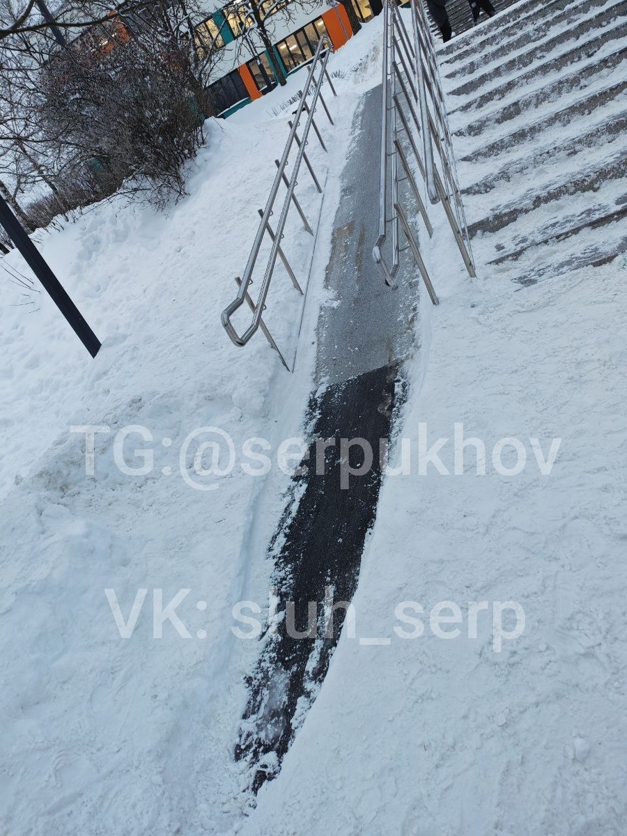 📩📤📥📨✉️ Здравствуйте. Пишу сюда в надежде, что администрация города обратит внимание , так как администрация школы игнорирует нас. Состояние пандусы у школы 2 просто безобразное. Мало того ,что он явно не соответствует нормам, так еще дети сделали из него горку для катания. Мы надеялись, что его хотя бы раз почистят за праздники, но стало только хуже. Только сделали ремонт в школе и сразу нарушения. Первый пандус очень крутой, на втором пролёте его просто нет, а на третьем пролёте сделали длинющий тунель, а не пандус. Уже писали посты, но реакции никакой. Конечно никто не побежал его переделывать. А сейчас ещё и лёд там сплошной. Кто принял после ремонта такой крутой пандус? Почему в среднем пролёте нет пандуса? Посещаем эту школу из-за платного кружка и даже за деньги не можем туда зайти комфортно. @serpukhov