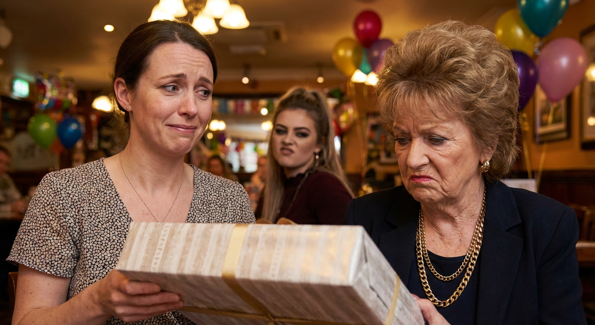 Она протянула коробку свекрови. Тамара Петровна взяла её, по весу сразу поняв, что внутри явно не техника. Улыбка на её лице застыла, а потом медленно сползла, превратившись в гримасу недоумения.