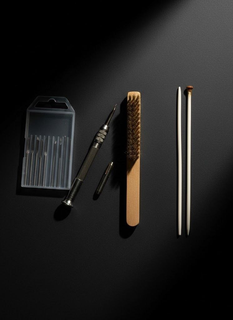 Иногда самая сложная задача после сигнала металлоискателя начинается дома. Неправильная чистка может навредить находке больше, чем столетия в земле. Давайте разберем три ключевых ручных инструмента для деликатной работы. 1. Шабер Предназначен для точечного удаления твердых окисных и карбонатных наслоений, которые не удаляются при отмачивании. Его задача аккуратно снять отдельные, особо прочные наросты, мешающие чтению деталей. Важно помнить ключевое правило, перед использованием шабера монета должна быть тщательно отмочена и промыта для удаления любых абразивных частиц (остатков грунта, песка). Это предотвращает глубокие царапины на металле. Инструмент применяется в основном для меди и бронзы, реже для серебра, и только на твердых, нерастворимых образованиях. Работать следует под лупой, легкими соскабливающими движениями, подобно художнику, постоянно контролируя давление. 2. Нумизматическая щетка Она предназначена для аккуратной механической чистки и полировки поверхности монет. Её