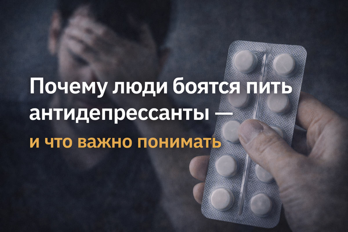 Идея «выпить таблетку» воспринимается как: «Я больше не управляю тем, что со мной происходит». Появляется страх: На самом деле современные антидепрессанты не подавляют личность и не стирают эмоции. Их задача — снизить патологический уровень тревоги или депрессии, а не «выключить» человека. Очень многие страхи формируются не из личного опыта, а из: Важно понимать: Интернет усиливает тревогу, а не даёт объективную картину. Часто антидепрессанты путают с: Это разные группы препаратов с разными задачами. Современные антидепрессанты (чаще всего СИОЗС и СИОЗСН): Один из самых частых вопросов: