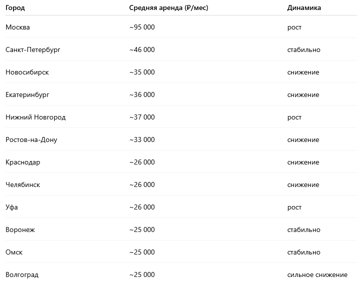 Рынок долгосрочной аренды в крупнейших городах России в 2025–2026 годах вошёл в фазу стабилизации. После активного роста предыдущих лет цены начали выравниваться, а в ряде городов — даже корректироваться вниз. Разберём ключевые цифры, тренды и что это значит для арендаторов и инвесторов. 🔹 Средняя ставка долгосрочной аренды в городах-миллионниках к концу 2025 — началу 2026 года: