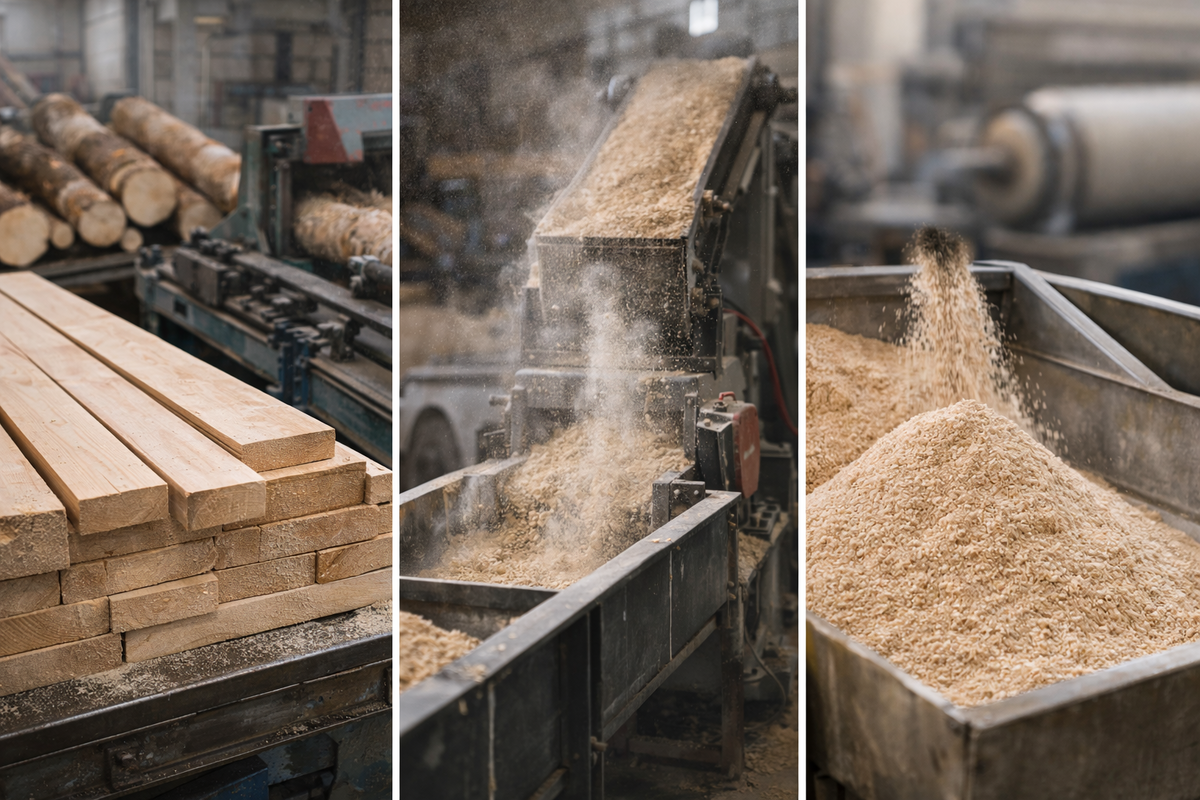Измельчение древесины до заданной фракции — ключевой этап получения древесной муки.