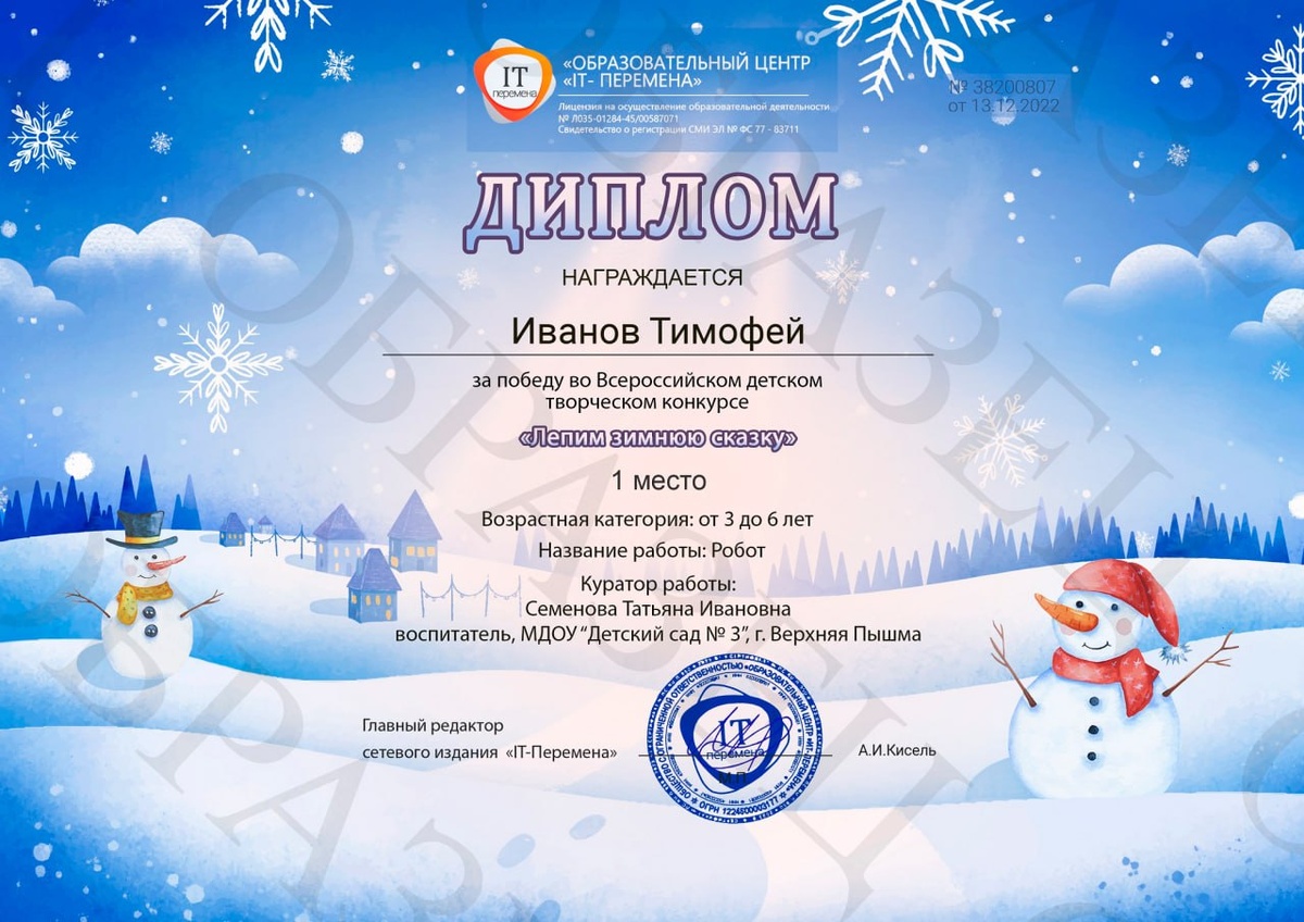 Мы подвели итоги бесплатного Всероссийского детского творческого конкурса "Лепим зимнюю сказку