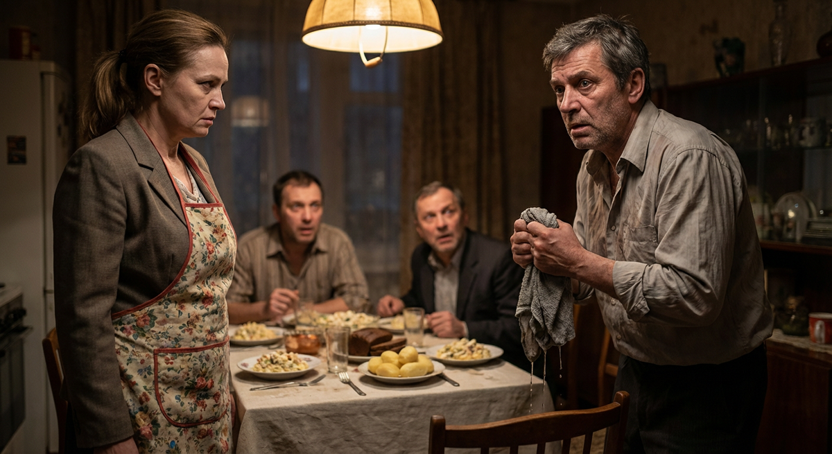 В комнате стало тихо, как в склепе. Сергей медленно перевел взгляд на тряпку в своей руке, потом на жену. Его глаза округлились от шока.