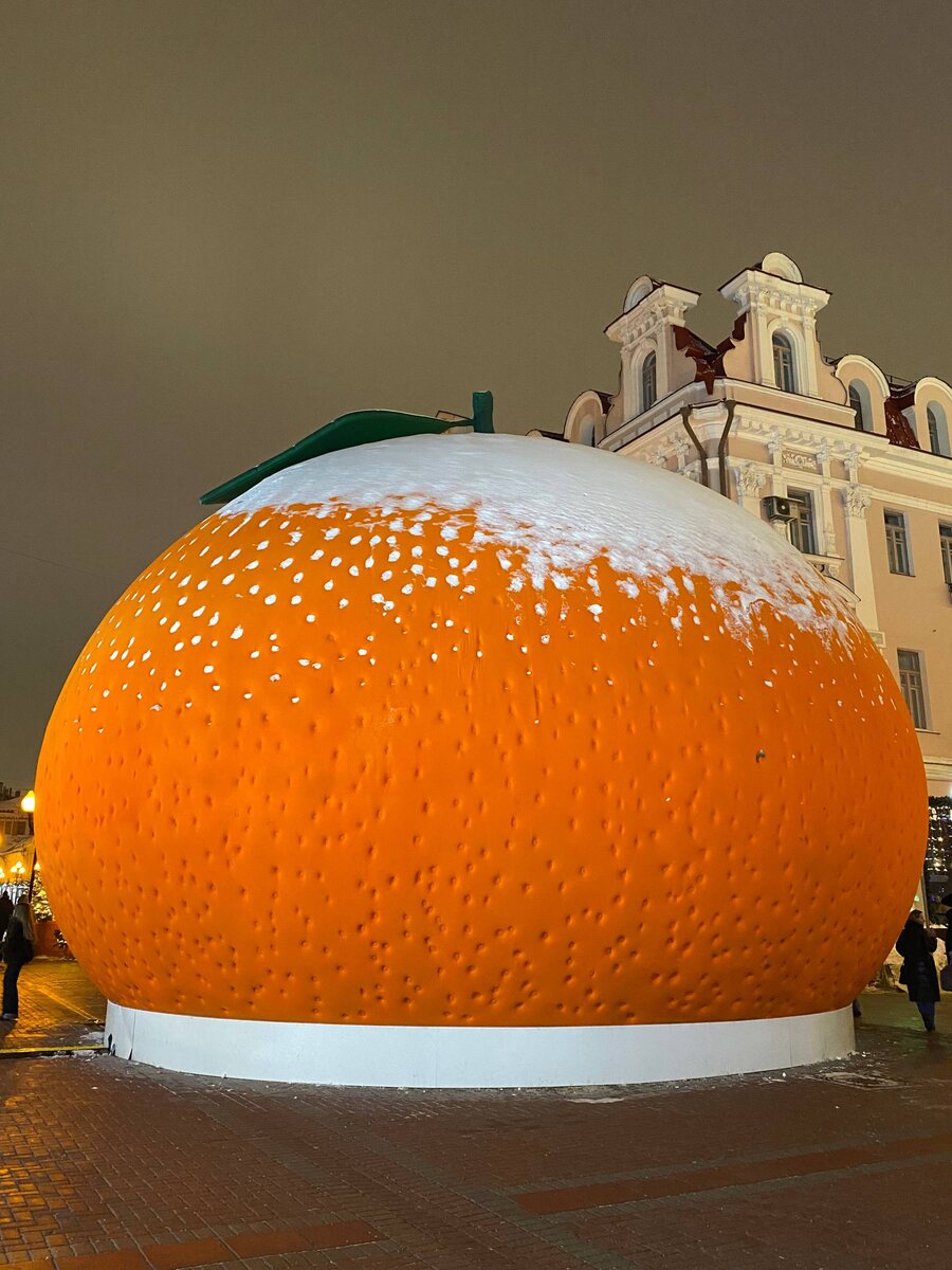 🍊 Прошлись по Арбату и наконец оценили мандариновую сказку. Очень советуем взглянуть на библиотеку Лосева — в снегу и огоньках это что-то невероятное! О грустном: очередь к мандариновым весам всё ещё осталась 😢
