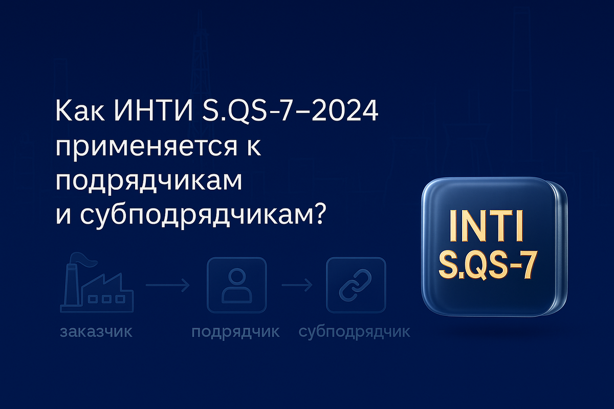 🎯 Как ИНТИ S.QS.7-2024 применяется к подрядчикам и субподрядчикам? СТО ИНТИ S.QS.7-2024 «Система менеджмента качества. Требования» — это отраслевой стандарт для компаний, работающих с нефтегазовыми заказчиками. В нём: То есть это не «ещё один ISO ради галочки», а усиленный стандарт качества для тех, кто хочет работать с крупными игроками ТЭК. Подрядчики и субподрядчики в логике S.QS.7-2024 рассматриваются как: Стандарт требует: Формально вы отдельная компания, но для заказчика, настроившего СМК по S.QS.7-2024, вы — часть его процессной модели. Один из ключевых акцентов S.QS.7-2024 — риско-ориентированный подход к поставкам и качеству. Организация должна: Любой подрядчик или субподрядчик — это: Поэтому подрядчики автоматически попадают в фокус: если у них слабая система качества, это создаёт риски уже для заказчика, который работает по S.QS.7-2024. Если смотреть на практику, от компаний, работающих по S.QS.7-2024, ожидают, что они: Для подрядчика это означает: Вас выбирают, оценивают и