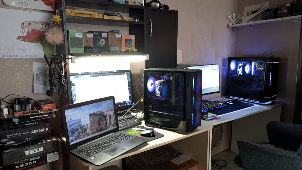Ведь только в таком состоянии будущего экспоната Кунсткамеры, можно продуктивно работать домашнюю работу. А ещё надо рельсы проложить вдоль столов, дабы моя ленивая ж... с комфортом совершала променад от точки М в точку Ж. Ну то есть, от девайса к девайсу. А то я пока доковыляю до ноутбука, то забываю, что делал с первым компом.