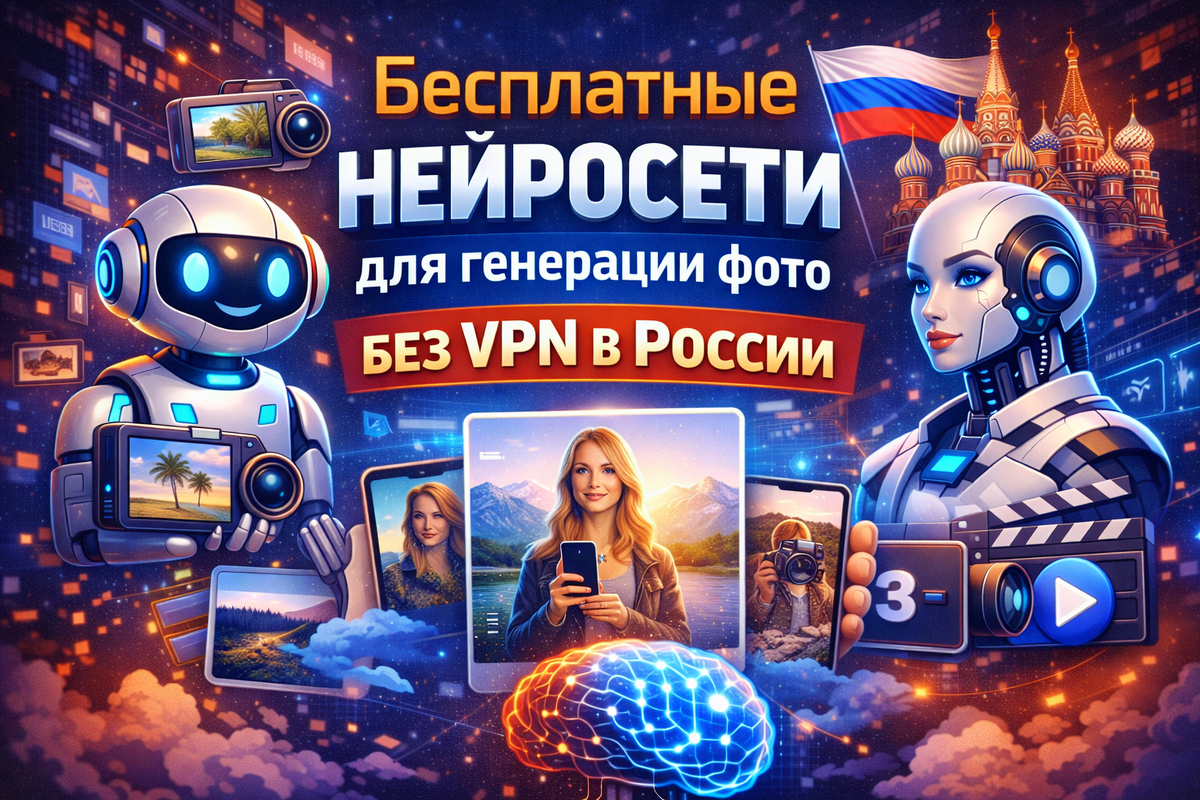 🎨 Обзор лучших решений, которые работают прямо сейчас (2026) В 2026 году генерировать изображения с помощью нейросетей стало намного проще — даже без VPN и сложных настроек. Если ещё недавно многие популярные генераторы были недоступны в России, то сейчас ситуация меняется: доступны сервисы с русским интерфейсом, без ограничений по геолокации и с бесплатными возможностями. В этой статье мы собрали самые интересные бесплатные генераторы изображений, которые можно использовать в России без VPN — от простых текст-в-изображение до более продвинутых решений. Нейросеть для генерации фото — это модель искусственного интеллекта, которая создаёт изображение по вашему текстовому описанию (промту). Вместо ручного рисования вы просто кладёте слова — и AI рисует картинку: от арт-иллюстраций до реалистичных сцен и портретов. Преимущества таких инструментов: Что умеет