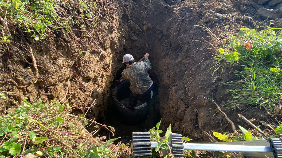 Потратила на колодец 30 тысяч рублей и заодно часть участка распланировала Колодец на участке рыли в самом конце осени. Экскаватором. Потом слышала версию, что лучше такие работы проводить весной – так гарантированно будет вода. Но я вообще не знаю, верно ли такое утверждение или нет. Если вы что-то знаете наверняка, поделитесь в комментариях, пожалуйста. Глубина колодца получилась около пяти метров, то есть туда полностью вошли пять бетонных колец – 120 см в диаметре и 90 см высота. Первое кольцо – перфорированное. Как установили кольца, вокруг засыпали тем же грунтом с камнями… Сам участок, особенно в районе колодца, неровный. По сути там - что-то напоминающее овраг, и когда рыли колодец заодно его засыпали. Конечно, еще предстоят работы по облагораживанию колодца, и его стоимость увеличится.