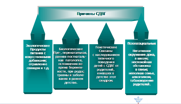 Врачи считают, что этот синдром является результатом особенностей работы нервной системы. Достоверных причин развития синдрома на сегодняшний день не найдено. Дети и взрослые с СДВГ часто имеют высокий или нормальный уровень интеллекта.