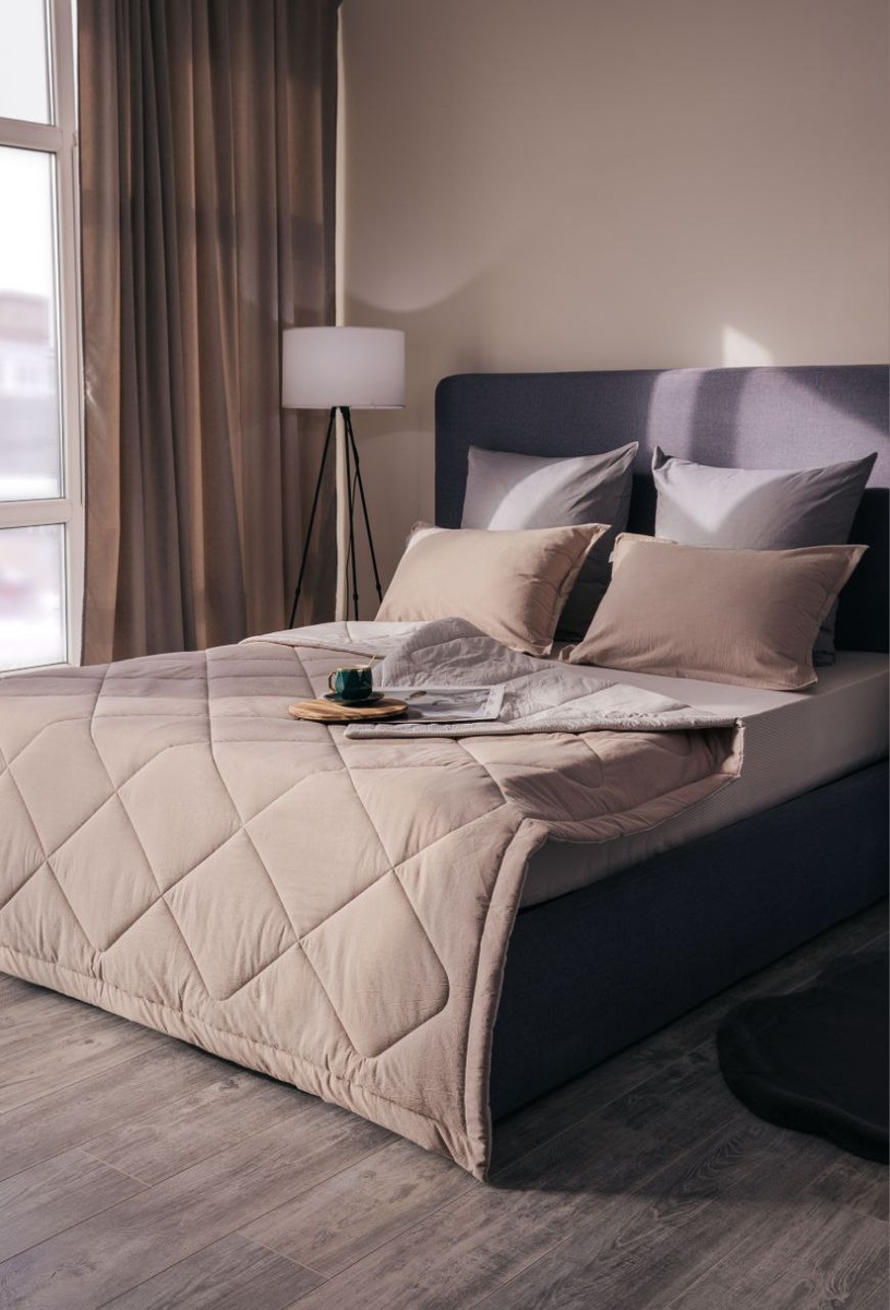 ✨ Постельное бельё с готовым одеялом из варёного хлопка - уже в наличии. Варёный хлопок любят за его особую фактуру и комфорт. Он мягкий, «дышащий», слегка фактурный и выглядит стильно даже без идеальной глажки. Такое бельё создаёт ощущение расслабленного уюта, как в красивых скандинавских спальнях или уютных отелях. Главное удобство - одеяло уже в комплекте. Без пододеяльника, без лишних движений. Заправили кровать за минуту и наслаждаетесь комфортом каждый день. Коллекция представлена в актуальных расцветках - спокойных, универсальных и легко сочетаемых с интерьером. Это постельное бельё для тех, кто ценит комфорт, эстетику и простоту в деталях. Один комплект - и ощущение уюта в спальне меняется сразу.