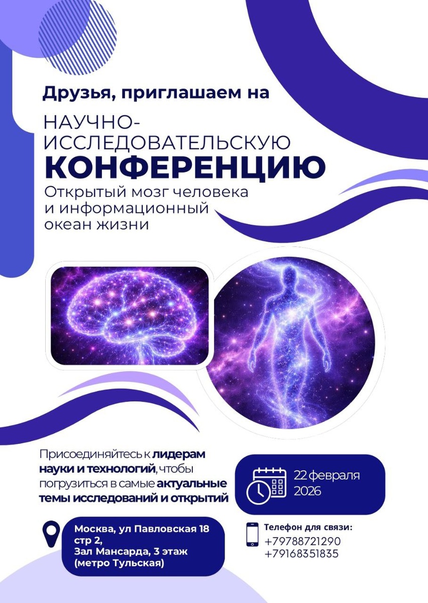 📣 Дорогие друзья, 22 февраля 2026 года состоится научно-исследовательская конференция «Открытый мозг человека и информационный океан жизни