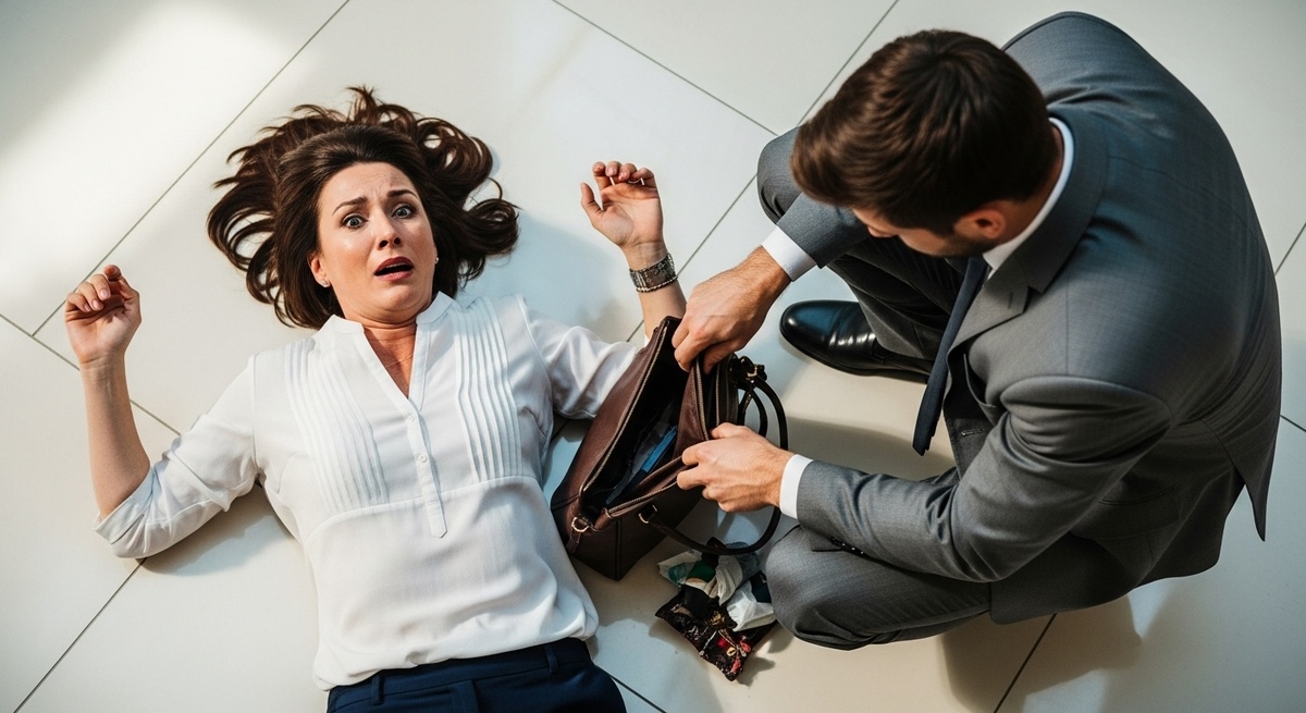 Она лежала на холодном кафельном полу торгового центра. Вокруг суетились люди, кто-то кричал вызвать скорую, а незнакомый мужчина в сером костюме методично перебирал содержимое её сумки. Елена попыталась что-то сказать, но язык не слушался. Мужчина поднял глаза, встретился с ней взглядом — и его лицо исказилось. Он резко швырнул сумку на пол и растворился в толпе.