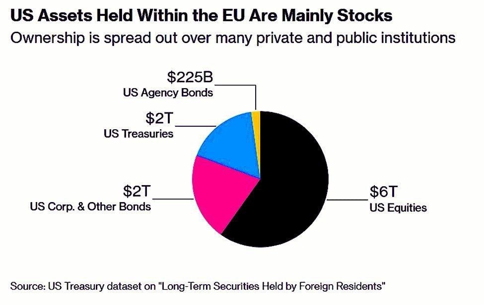 🇺🇸 EU investors now hold a record ~$10T in US assets, according to Treasury data