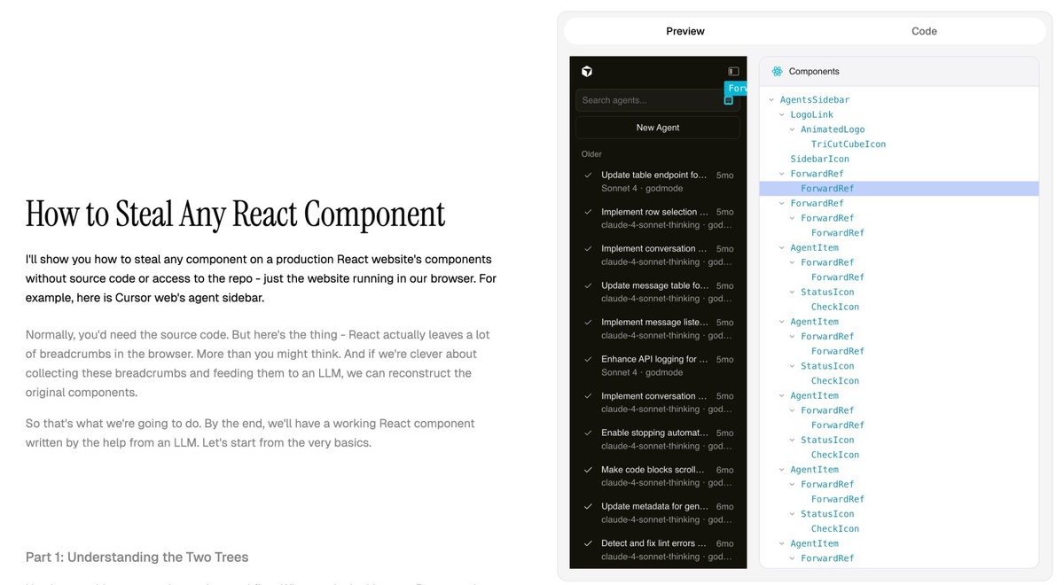 ⚡ Разработчик научил ИИ извлекать React-компоненты с любого сайта — без исходников