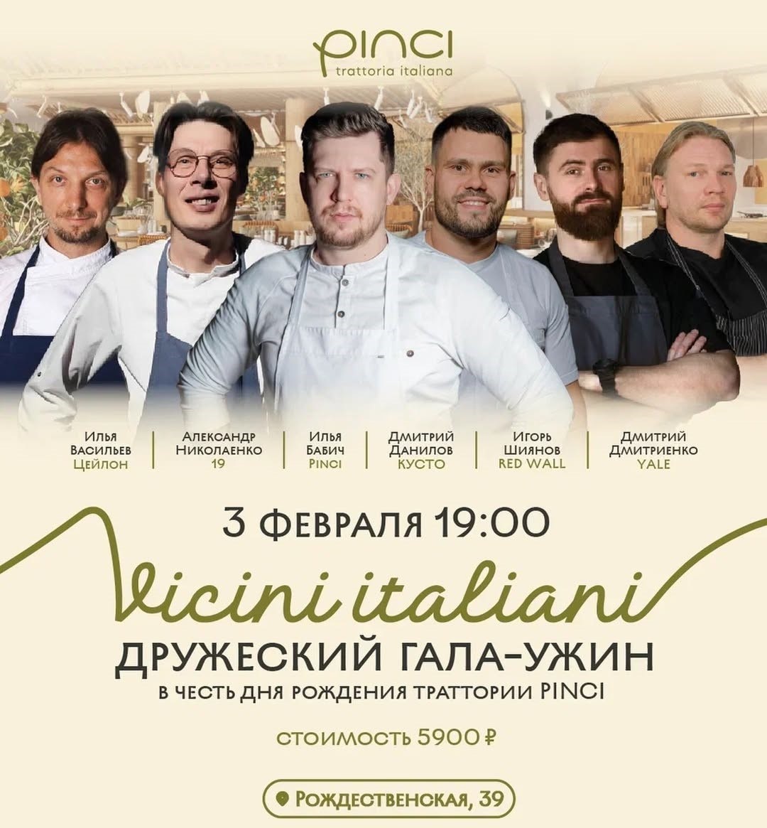 3 февраля в ресторане Pinci состоится праздничный ужин, приуроченный к первому Дню рождения проекта