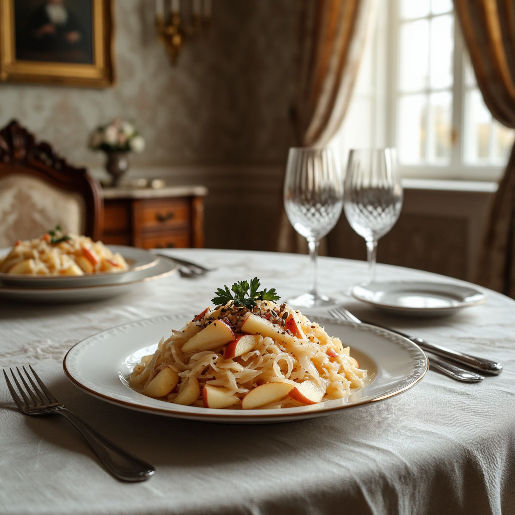 Это салат из квашеной капусты с яблоками и тмином. Потому что квашеная капуста в русской кухне - это не гарнир. Это отдельный вкус, отдельная культура и отдельное удовольствие.