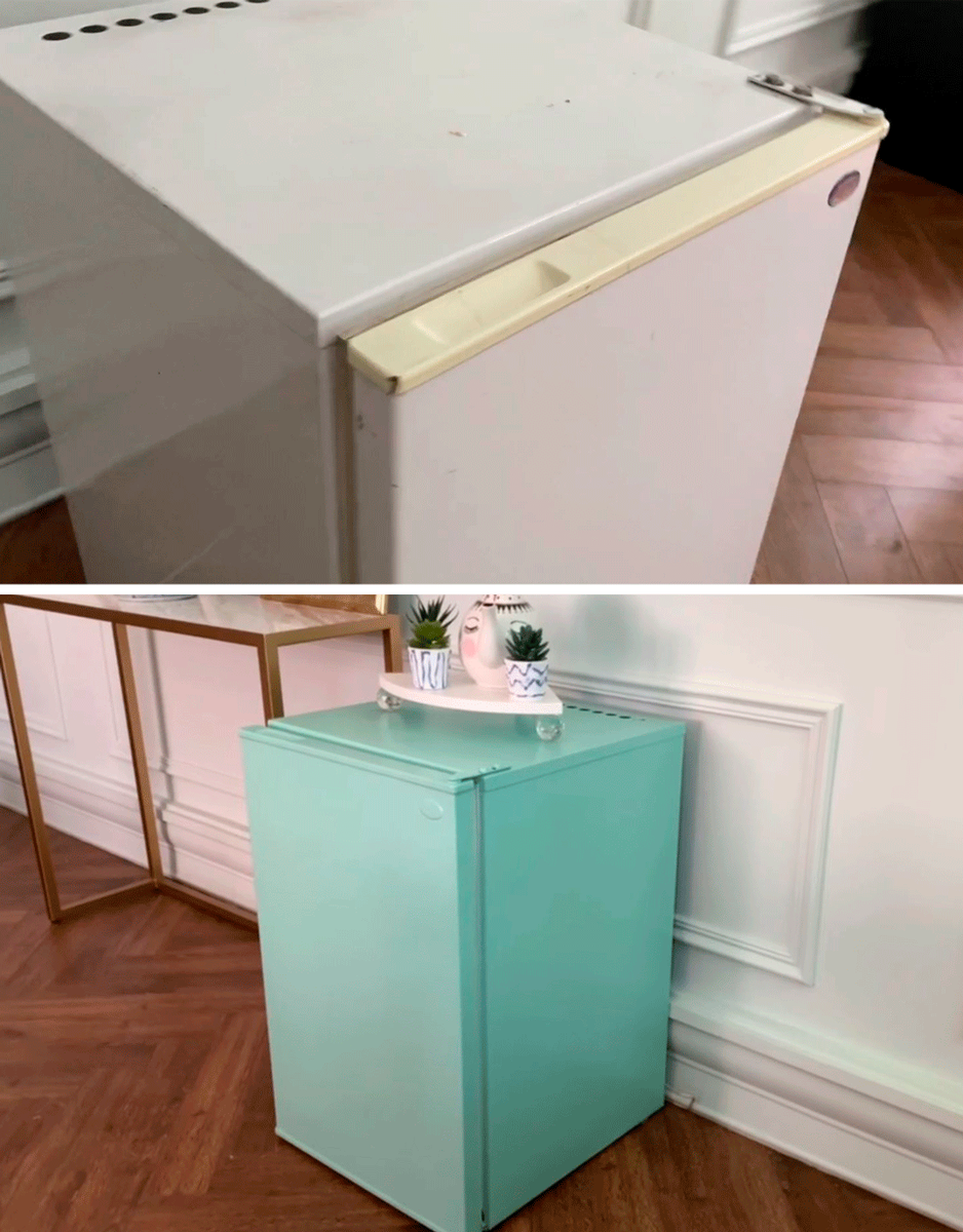 Красим старый холодильник в цвет Тиффани