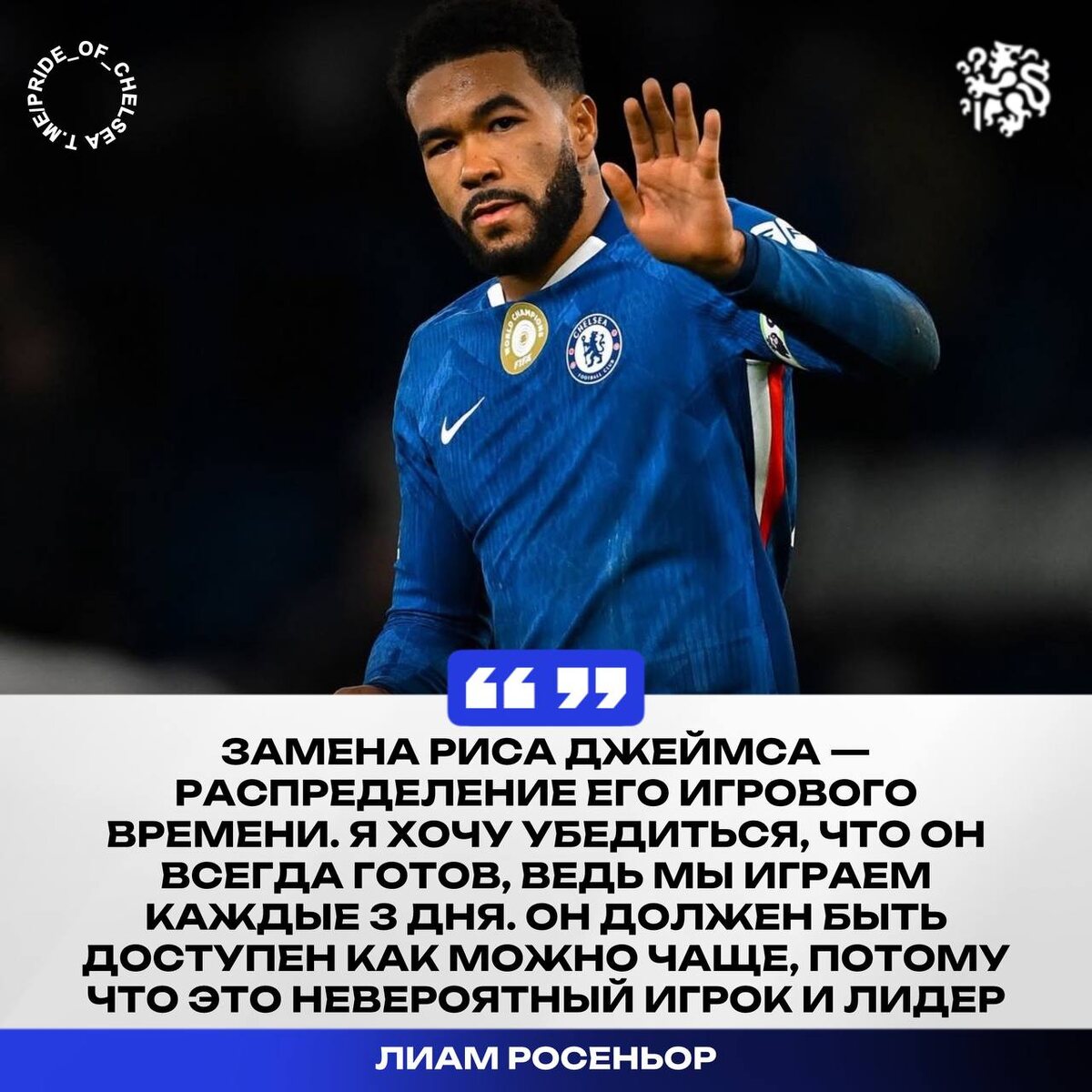 🎙 Лиам Росеньор о замене капитана «синих» Риса Джеймса: